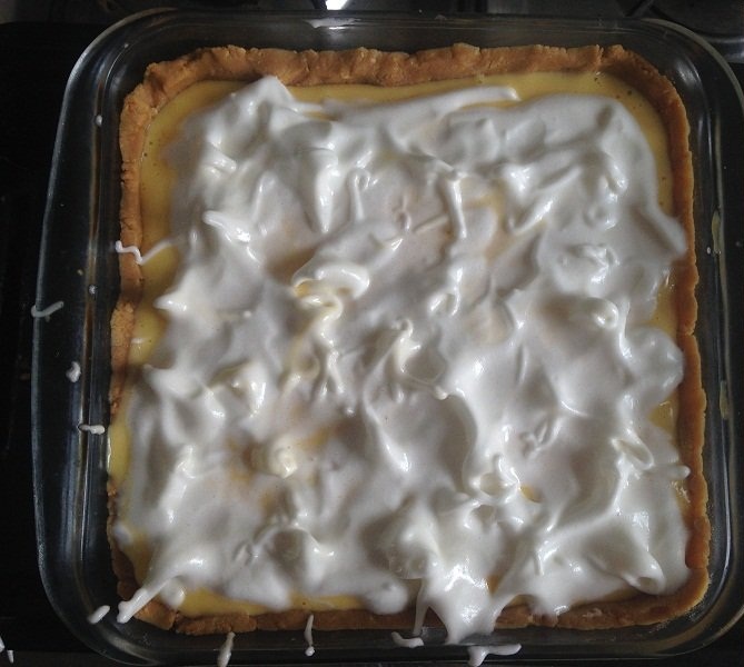 Para esto mezclamos las claras de los huevos, limón y un poco de azúcar hasta llevarla a punto de nieve; esto se hace mezclando de forma consistente por unos minutos.