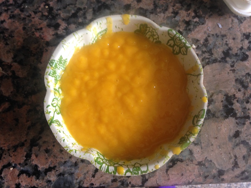 Cuando tengamos el concentrado de mango lo procedemos mezclar con la leche condensada, el jugo de un limón y una yema de huevo en la licuadora, dejamos unos minutos reposando la mezcla en la licuadora y nos vamos para el nevado.