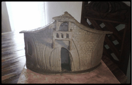 Se colocan sobre la base de cerámica el piso de la fachada, se coloca una botella o algún objeto que silva de soporte de la parte trasera, la pieza del piso dónde se va unir se corta y se le coloca la pega de arcilla con el pincel, también a las demás piezas se cortan, se le coloca la pega y se unen luego se deja endurecer un poco, se cortan las ventanas y la puerta y se vuelven a pegar que quede un poco abierta de un lado, ahora se coloca el techo y se limpia con la emponja y el pincel. Luego viene el decorado que se lo puedo explicar en otro post.
