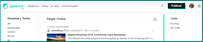 La pantalla que muestra todos los post que publican a los Steemians, los de tu interés, de todos a quienes sigues.