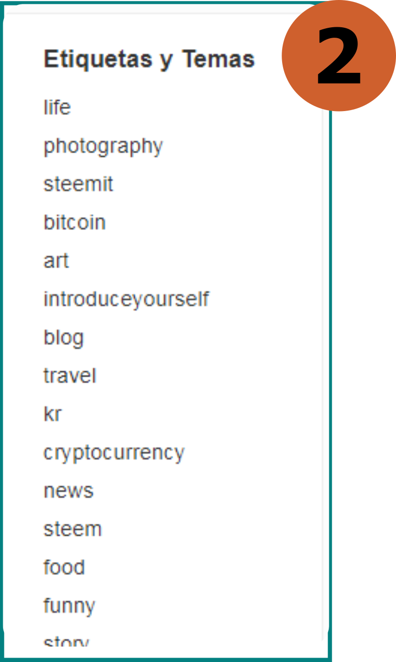 En las etiquetas y los temas, de igual manera que en el punto , la función principal es filtrar los post y que los Steemians puedan disfrutar y utilizar su tiempo, de acuerdo a sus gustos. | ![]() |