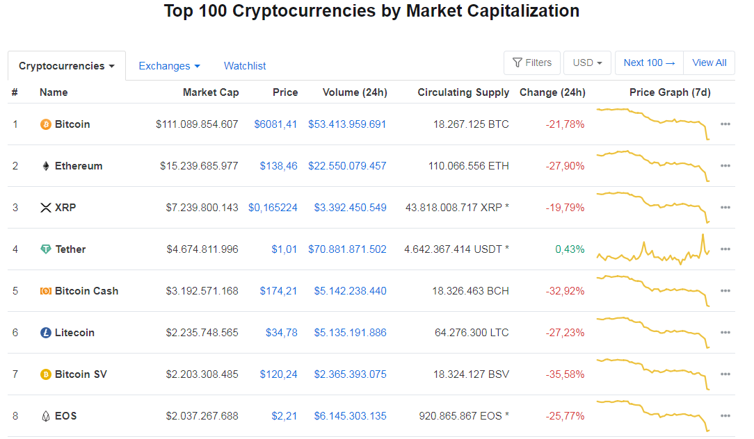 En ROJO los mercados de las criptomonedas