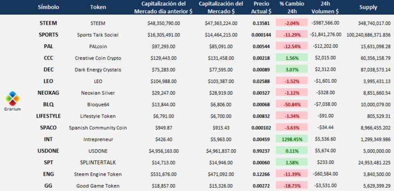 El proyecto Erarium ha venido trayéndoles información referente al trading, las finanzas, la economía, el ahorro y análisis técnicos de las principales criptomonedas entre muchas otras cosas relacionadas con el mundo financiero. Sin embargo, @erarium ancla sus actividades principales de inversión y formación con la comunidad de Steem, y es por esto que hemos decidido darles información referente al mercado de SteemEngine y mostrarles un seguimiento exhaustivo de los que consideramos los principales tokens de dicho mercado, y su variación cada 24 horas, todo esto con el fin de que puedan tener una visión general de cómo se comporta éste, y además tengan una idea de cuando es propicio comprar o vender ciertos tokens para preservar nuestro capital.