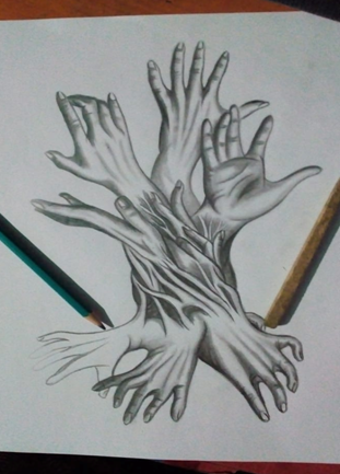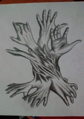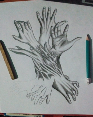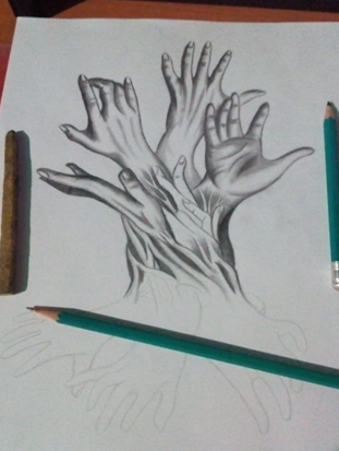 Es una pieza muy artistica, desearía dibujar manos como tu, cada una me expresa sentimientos distintos.