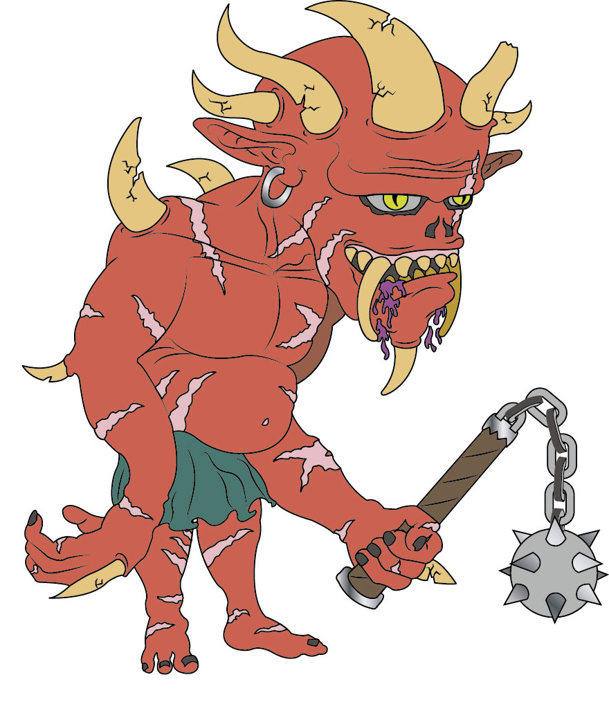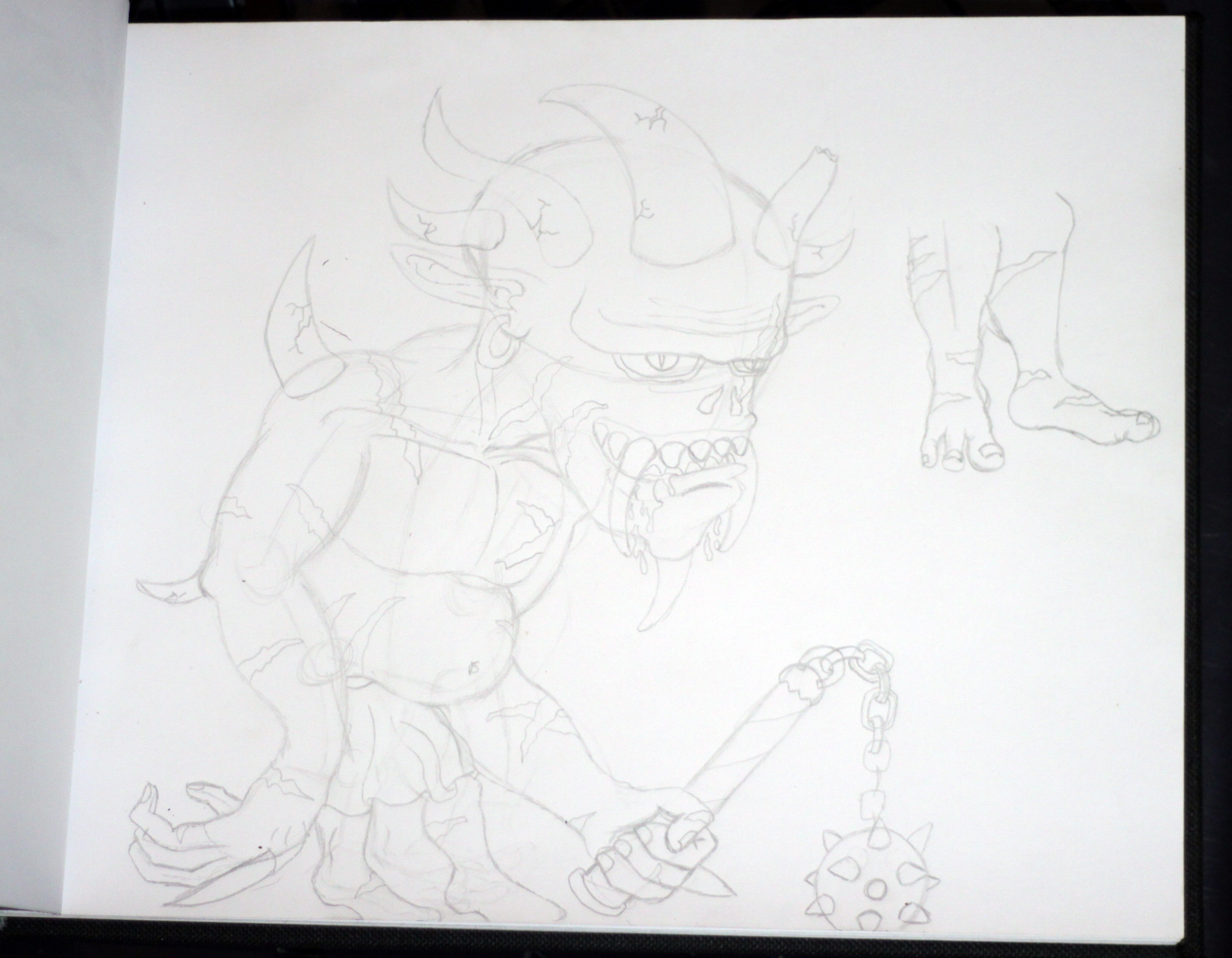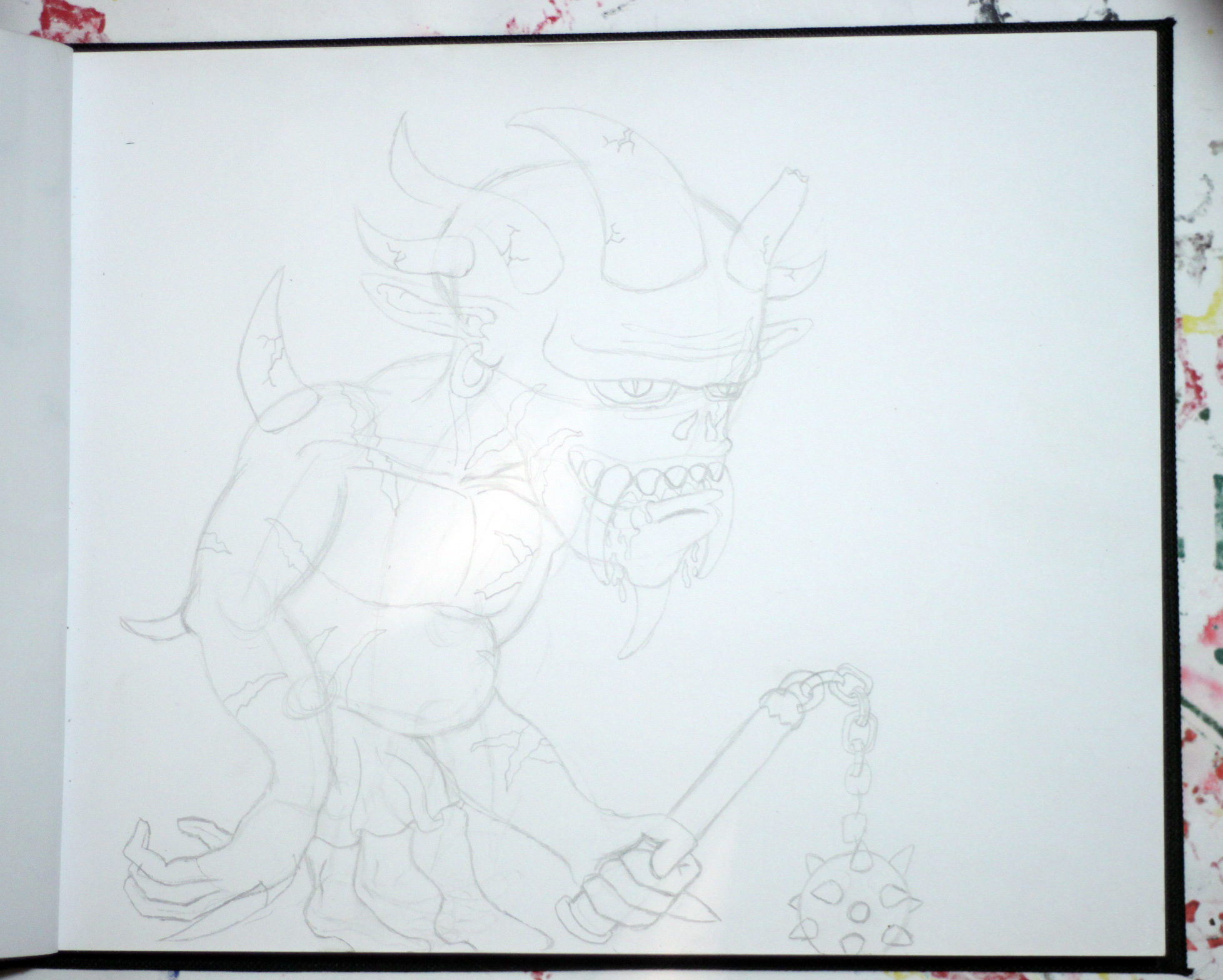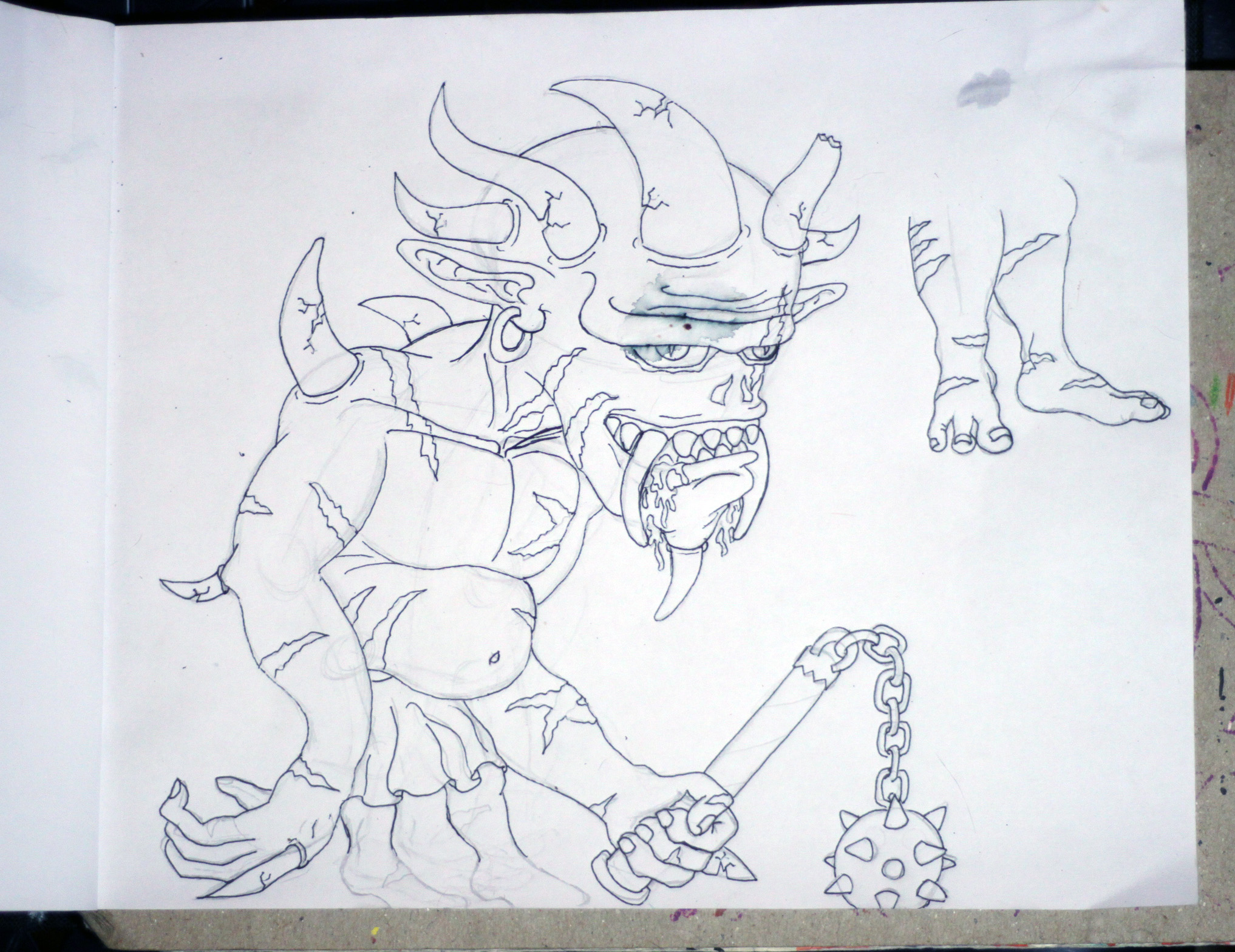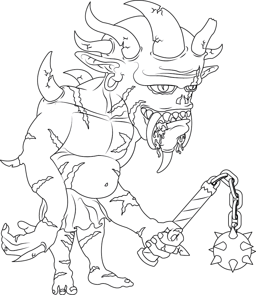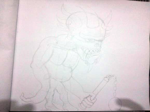 | Aquí ya fui agregando los detalles de las cicatrices, el arma, los cuernos, entre otros. | Here I was adding the details of the scars, the weapon, the horns, among others. |