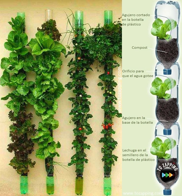 Hortaliza en Vertical con botellas de plastico reciclables