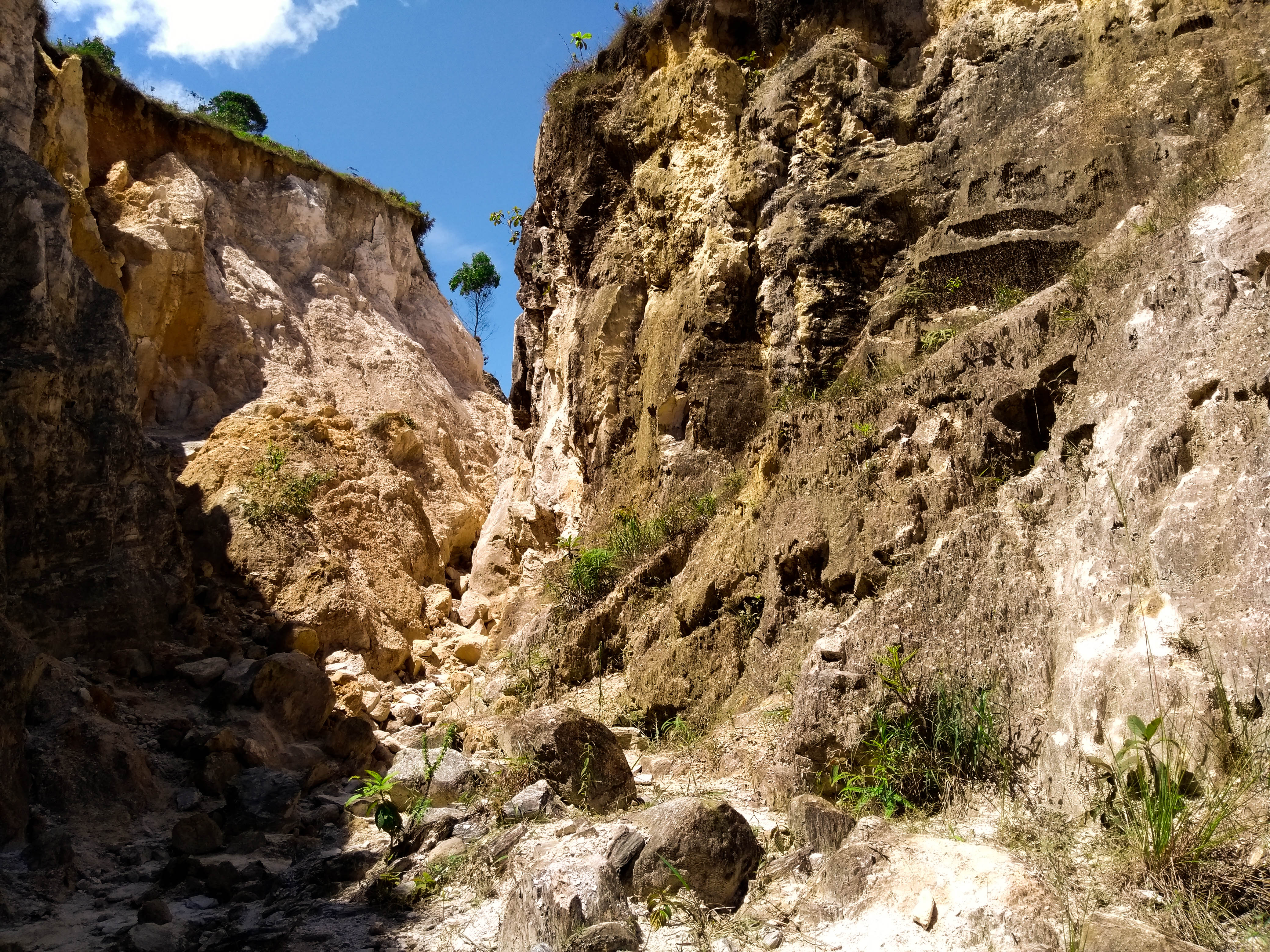 De regreso tomamos un desvió que nos condujo a las cárcavas o barrancos de san Pedro, si cárcavas ya que no son fallas geológicas como generalmente se les conocen, así lo apunto FUNVETIC Fundación Venezolana de Ecología, Turismo e Investigaciones Científicas, en un estudio realzado. Es fascinante pasar por sus aberturas ya que en algunas es necesario soltar el morral para poder escabullirse entre ellas.