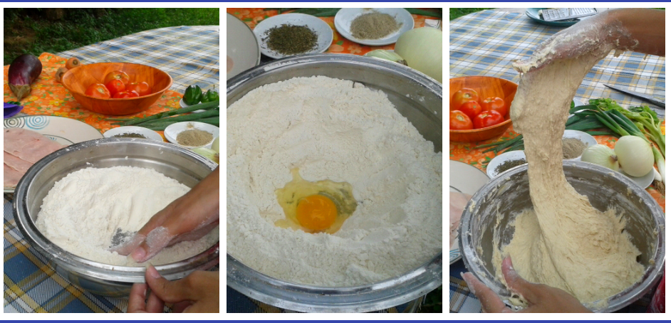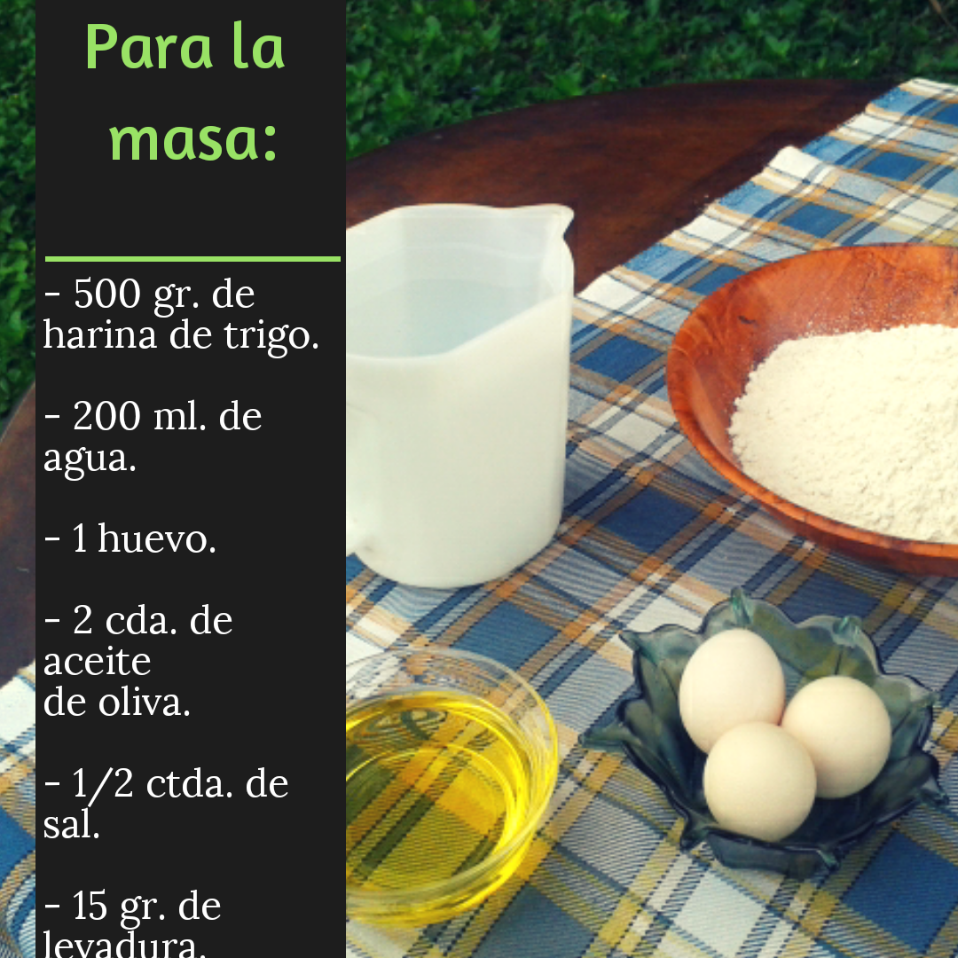 Para preparar la masa, debemos colocar en un recipiente los 500 gramos de harina; luego debemos agregar 1 huevo, la sal, y el aceite. Amasar hasta incorporar esos ingredientes. La levadura debemos disolverla en los 200 ml. de agua, luego vamos incorporando poco a poco dicho líquido a la harina, y debemos amasar hasta obtener una mezcla homogénea y suave.