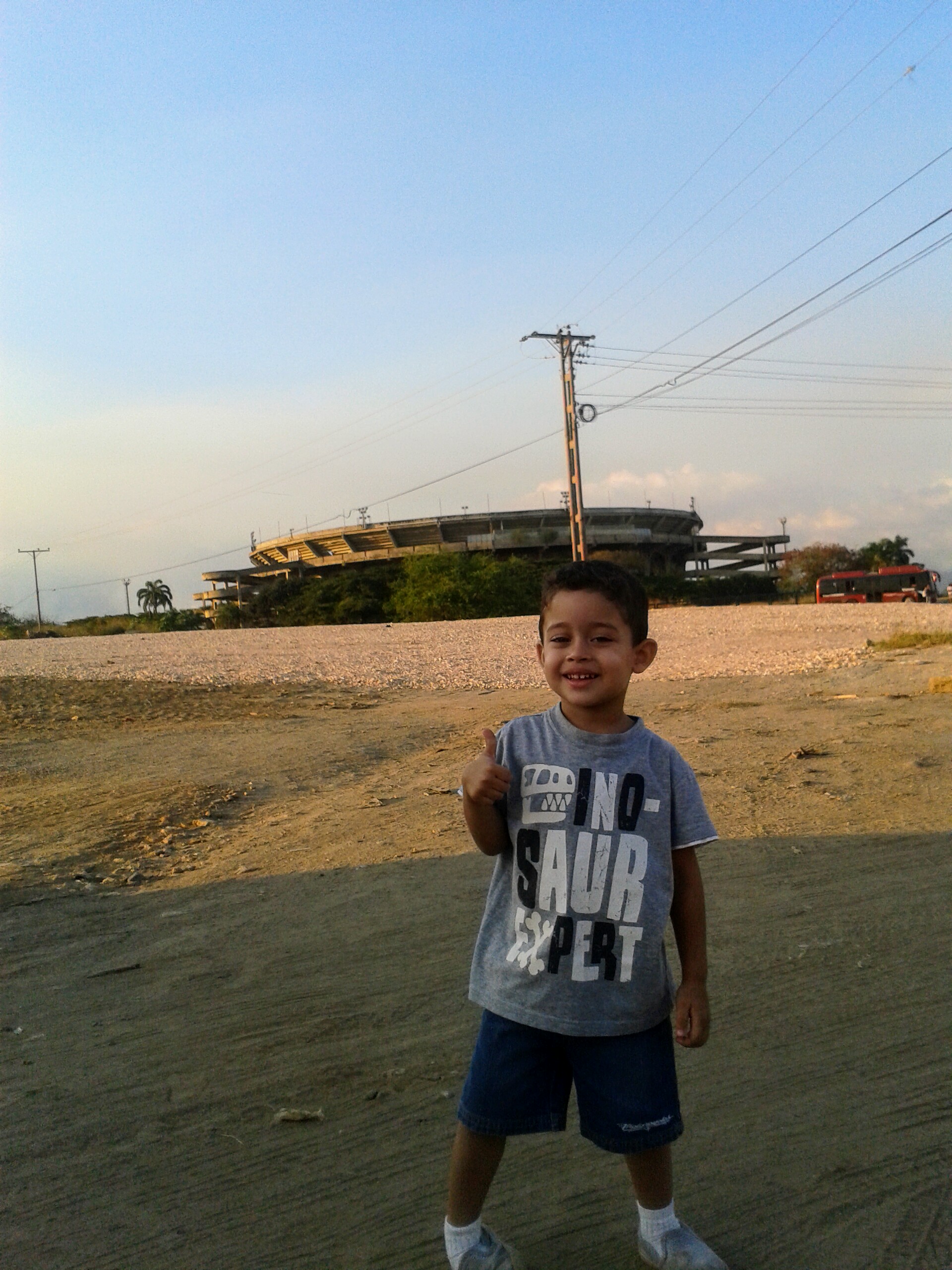 Está fotografía la tome un día que parecía bastante agitado ya que hacía un recorrido por la ciudad de Valencia en búsqueda de adornos para el cumpleaños de mi hijo Diego, el día paso muy rápido y no conseguí muchas de las cosas que necesitaba. Ya finalizando la tarde y con muchos asuntos aún sin resolver el estrés estaba en su punto máximo, mi esposo un poco cansado por el agetreo del día detuvo el auto en frente de la imponente plaza de toros y nos quedamos allí observando el paisaje y tomando un refresco; Diego estaba bastante inquieto y hablaba y hablaba sin parar hasta que llegó un momento en que no hizo ruido alguno ¡¡lo que llamó mucho mi atención!! "ese pequeñito habla como un periquito" Diego se quedo observando aquel monumento asombrado de su tamaño y su carita de emoción me provocó una sensación de paz y tranquilidad indescriptible. Increíble que ese gesto tan sencillo alegrara todo mi día no cabe duda que el amor hacía un hijo es el amor más puro en el mundo🎈🎈🎈