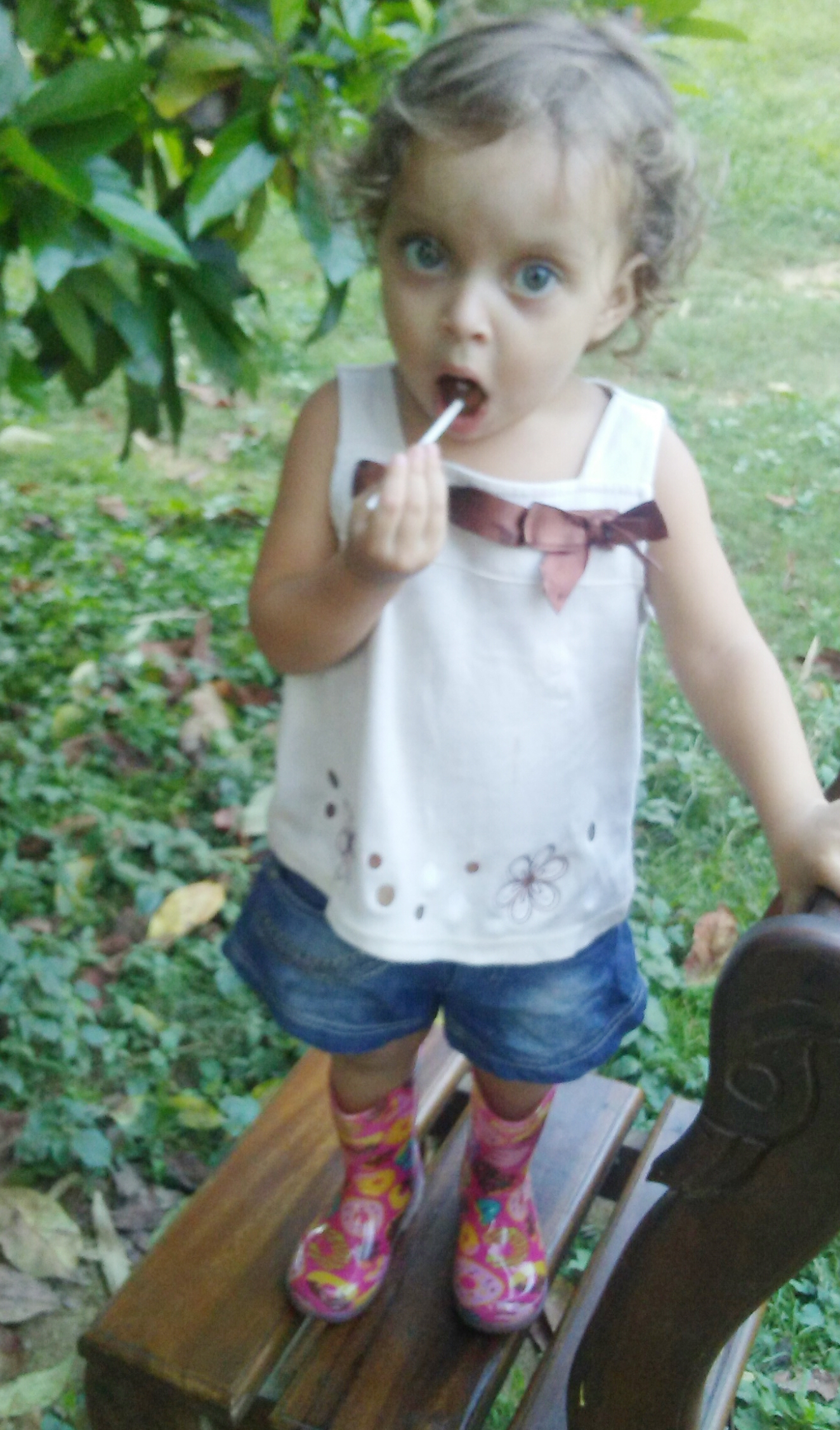 Mi hermosa Victoria y su amor por "Roberto el pollo"...