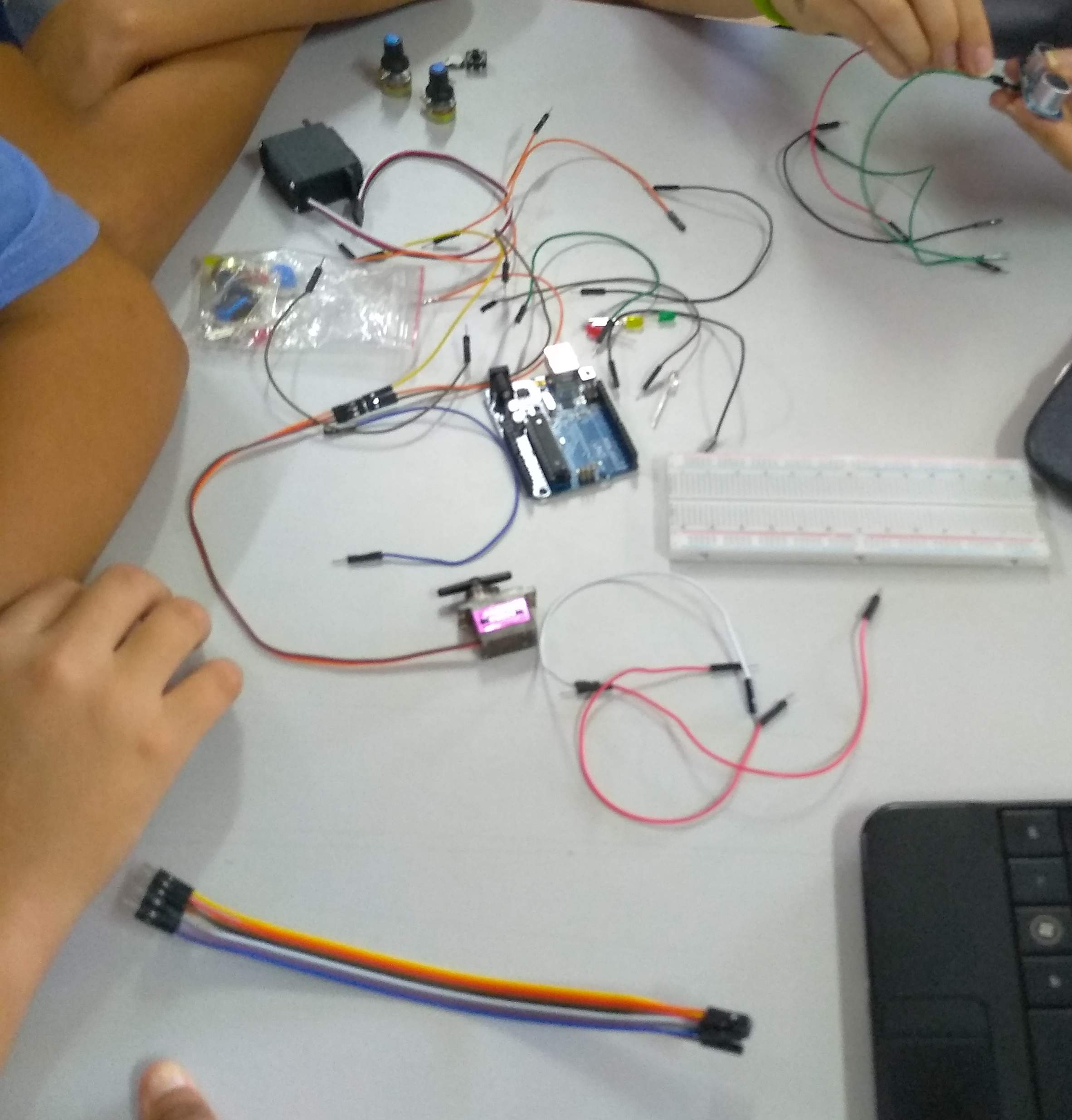 Estos cables se llaman "jumpers" y son los que conectan la placa Protoboard a la placa Arduino o a algún otro componente, como un sensor o servomotor.