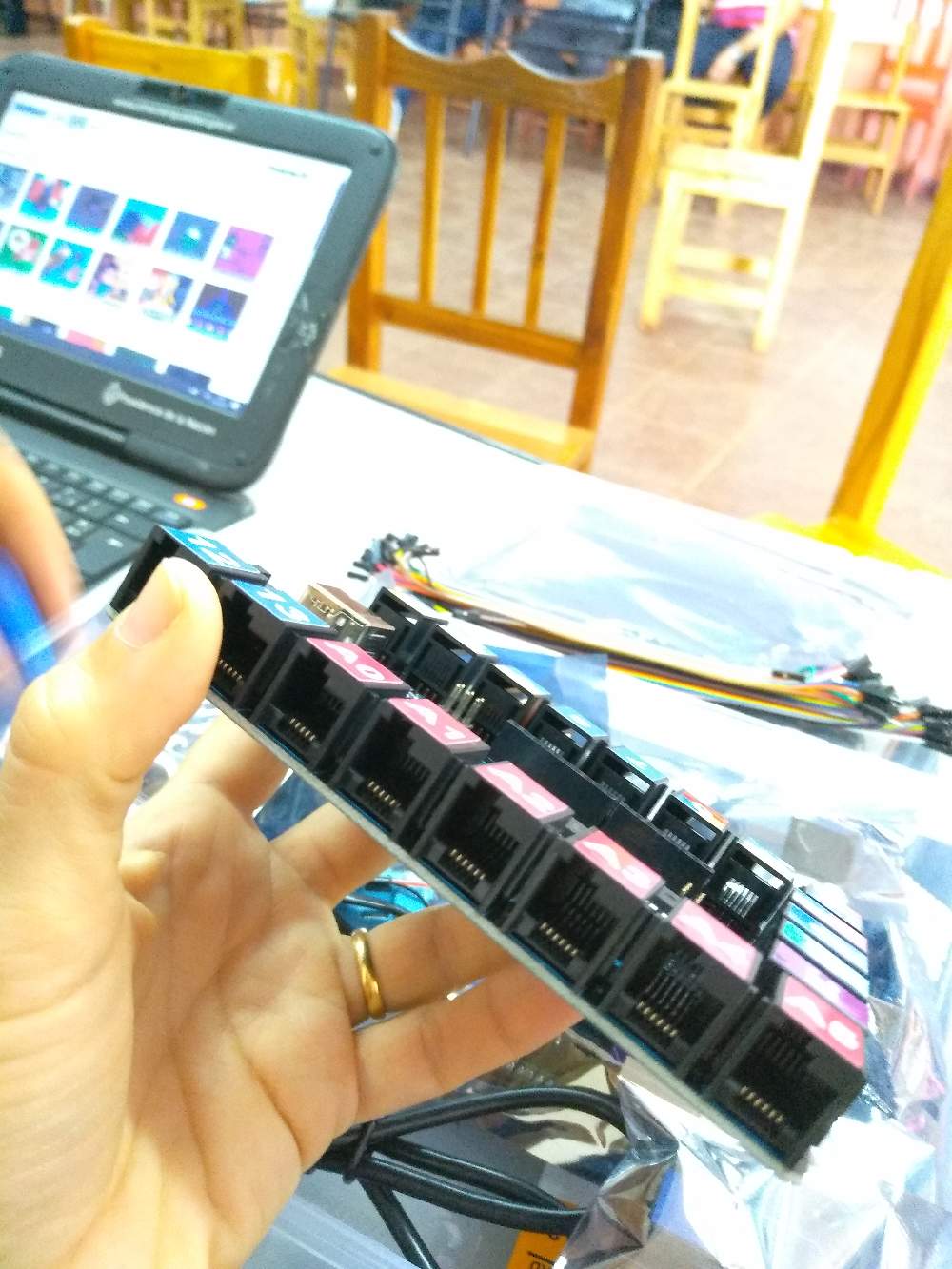 Hoy nos trajeron este tipo de placa Arduino con conectores más fáciles y circuitos integrados.