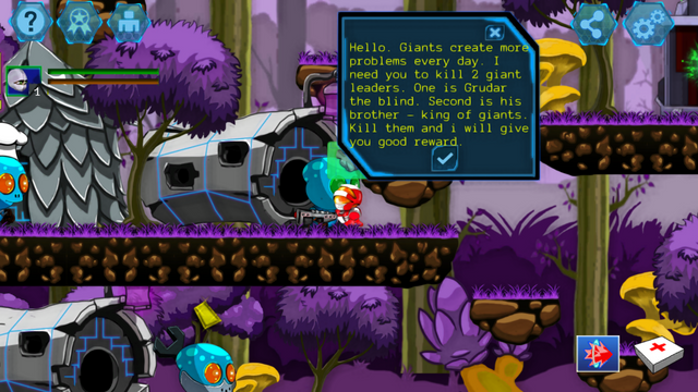 Tu nave se ha estrellado contra este planeta. No se explica si quieres salir del planeta o no, pero te topas con algunos lugareños amistosos y hostiles.