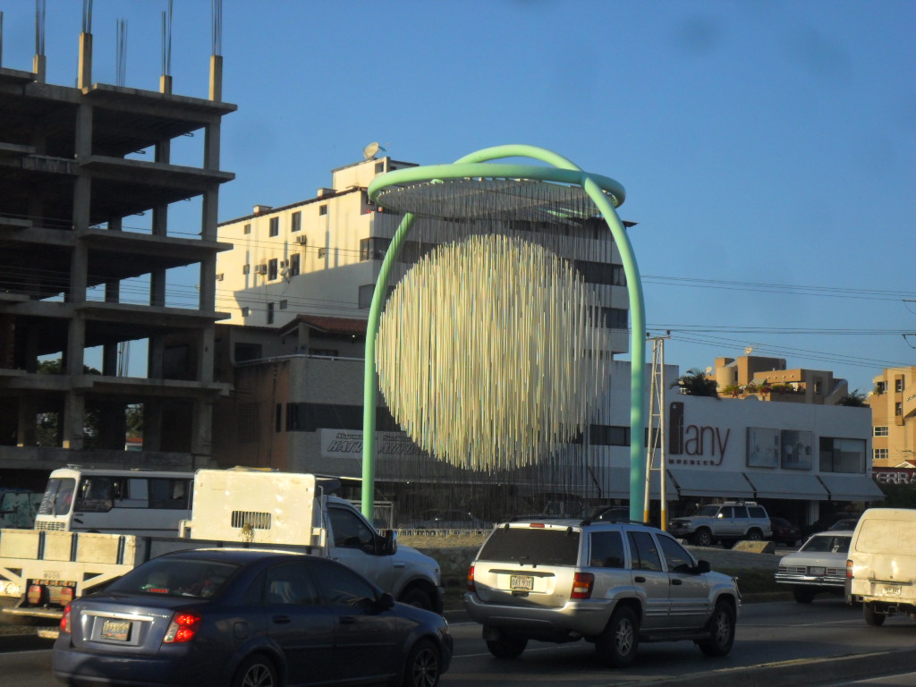 Seguimos conociendo un poco mas del arte en la isla de Margarita Ed. Nueva Esparta, caminando por la Av. Jóvito Villalba me encontré con esta hermosa escultura que la llaman La Esfera de Margarita , es similar a La Esfera Caracas, dos grandes obras del artista Jesús Soto. Me di la tarea de buscar un poco en Internet sobre esta escultura y cómo se compone para dar esa forma esférica a simple vista.
