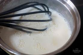 Agregar leche hervida a la mezcla para que obtengan la misma temperatura, luego agregar a la olla y no dejar de mover hasta que este espesa.