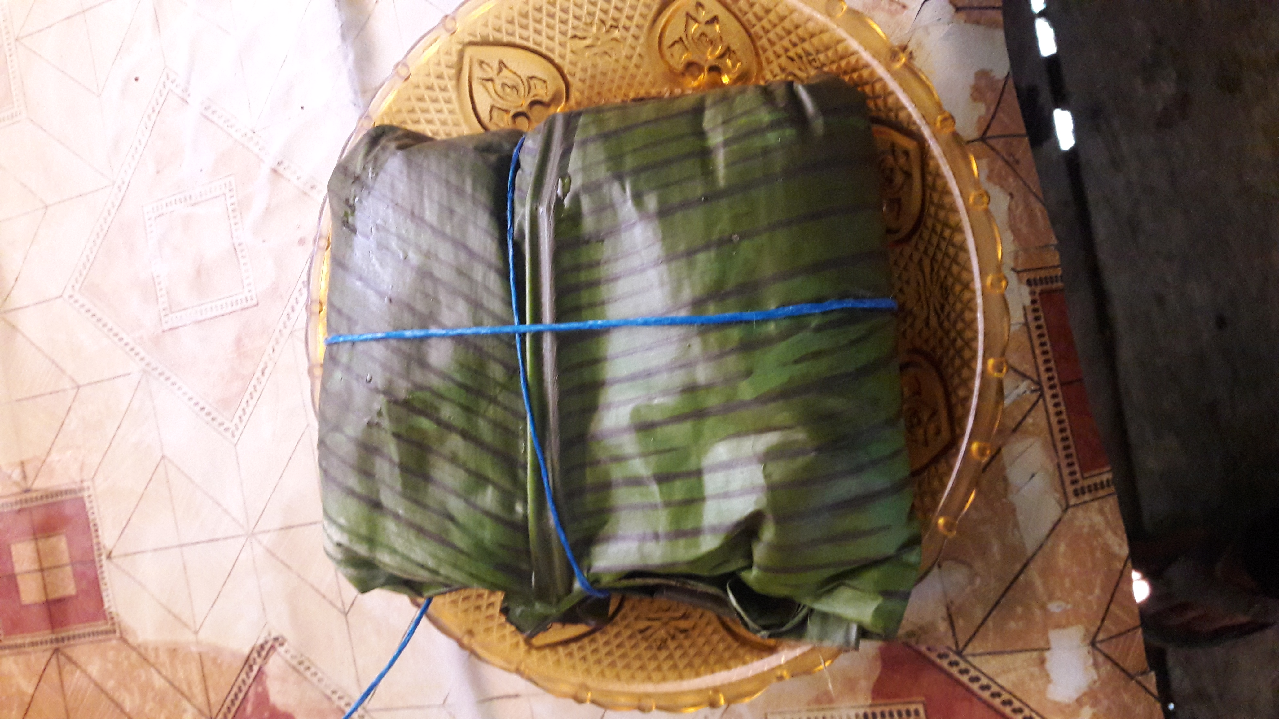 Ojas de verde : que sirve para envolver el pescado junto con la masa .