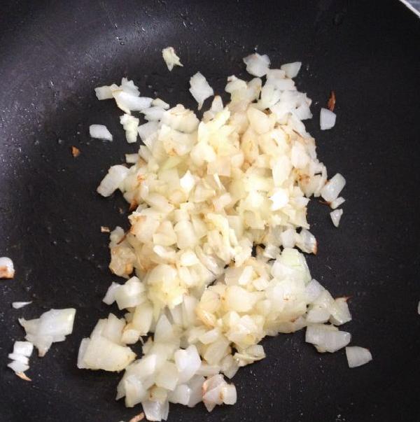 • Se pica la cebolla y el ajo muy finamente, y se sofríen en un sartén por aproximadamente 3 minutos.