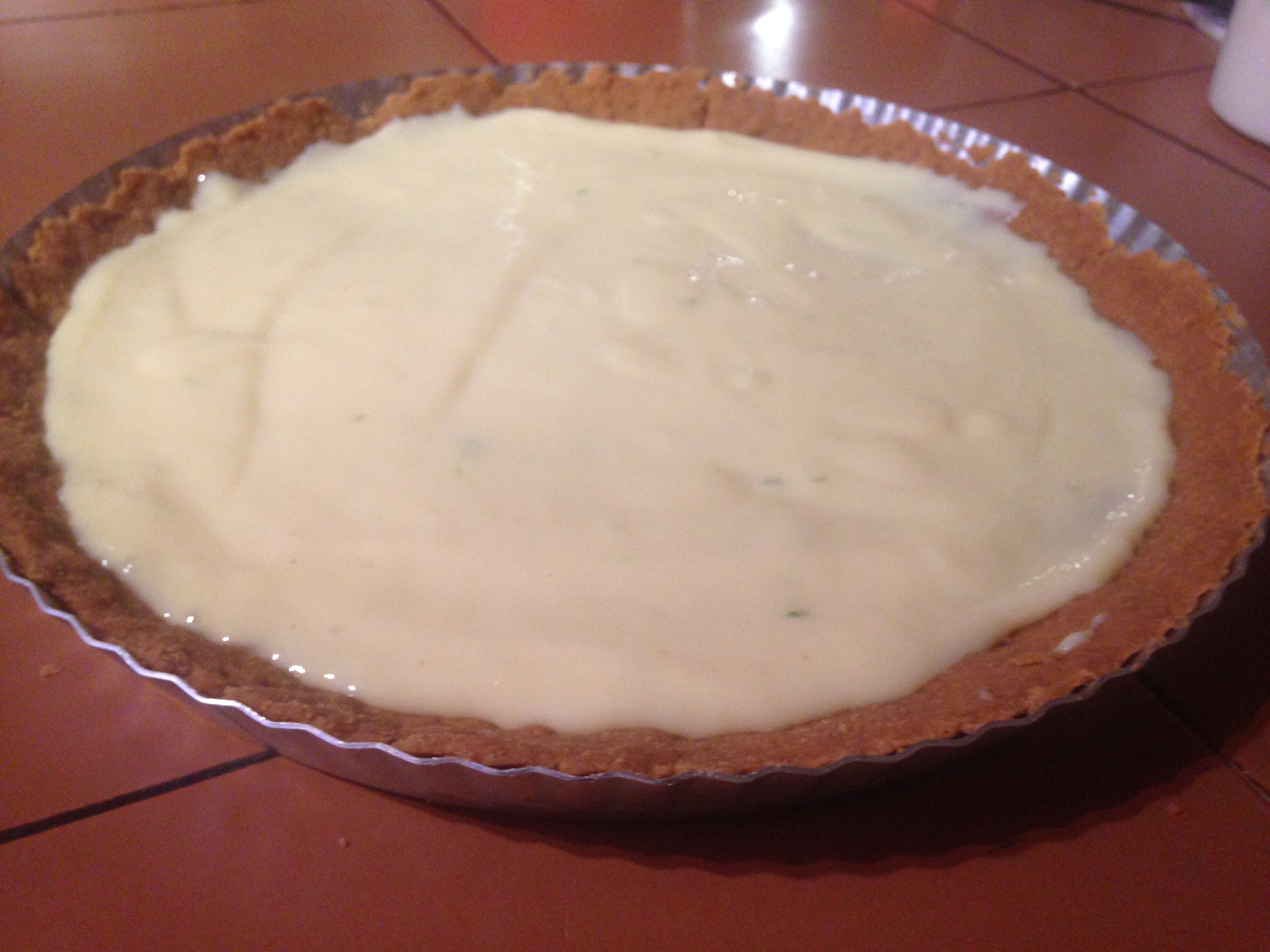 Colocar la masa en un molde desmoldable para pie y distribuirla.