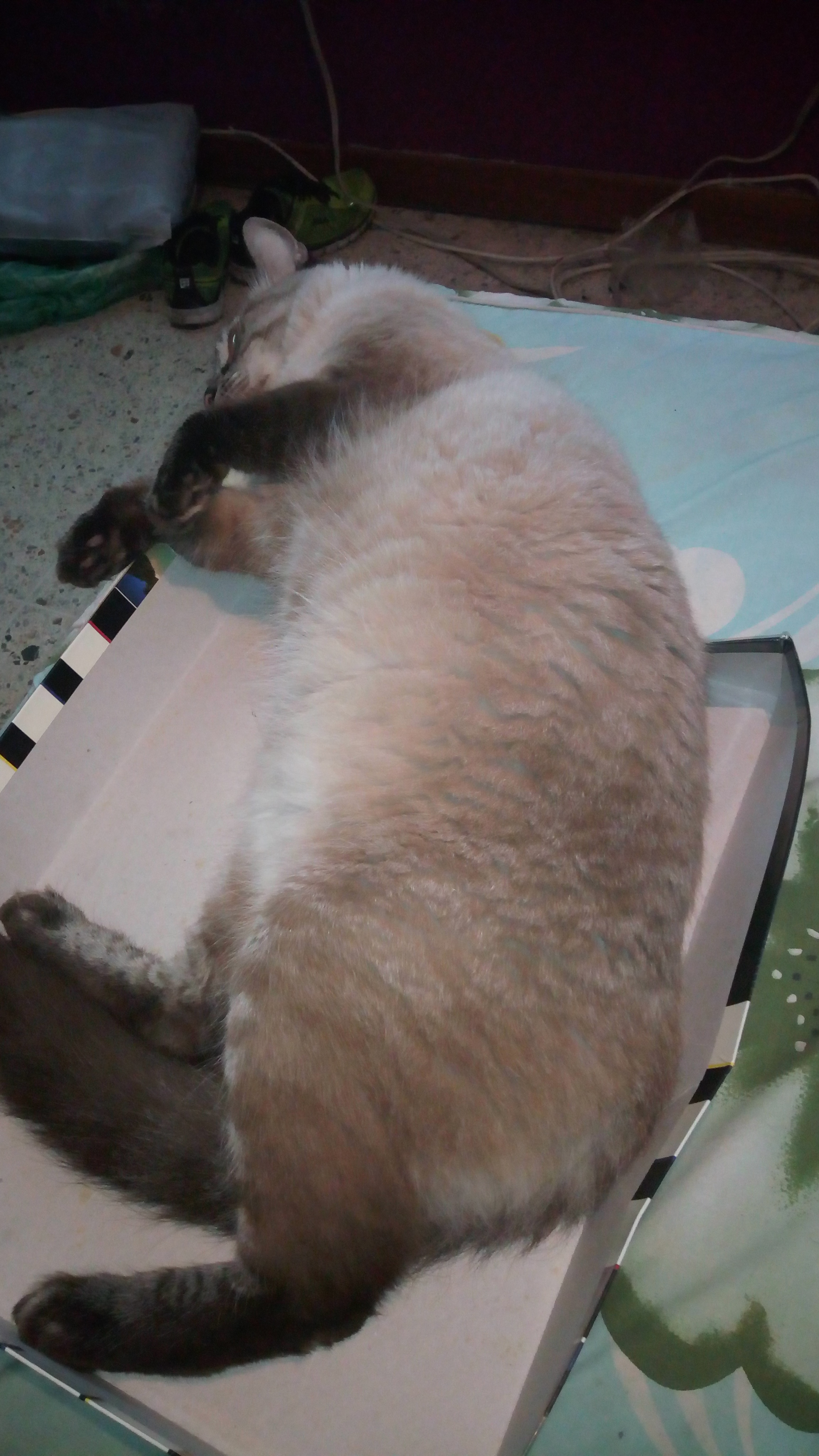 En esta lo encontré durmiendo sobre un bolso térmico, y el muy descarado abrió un ojo para verme y se acomodó para seguir durmiendo!!