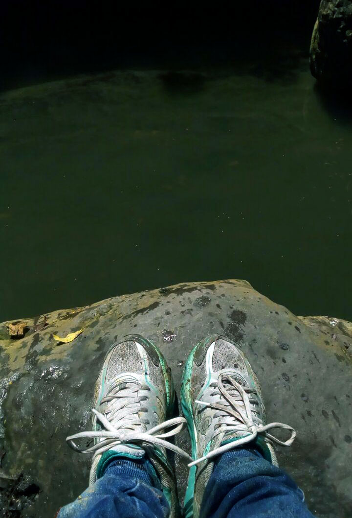 Al fin estábamos en la cima de los pozos, pero nuestra meta era bajar más y llegar al pozo como tal, ese recorrido, en lo personal, fue el más difícil de todos. Teníamos que bajar por una pared de tierra prácticamente, de nuevo agachados casi arrastrándonos. Pasamos unas rocas enormes (y mojadas) donde me caí y desgraciadamente le partí la pantalla a mi cámara, pero son cosas que pasan, seguía funcionando.