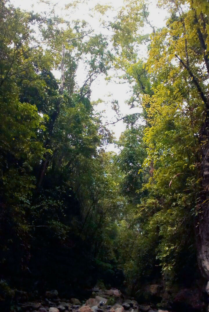 Llegamos a la entrada del camino, hasta donde el bus podía llegar, de ahí en adelante teníamos que seguir caminando para bajar hasta los pozos. Al principio no era un recorrido demasiado difícil, árboles, pasto y un poco de lodo, lo normal. Seguimos bajando y nos encontramos con unos árboles que se habían caído y el único paso era por debajo de estos, de cola, arrastrándonos pero pasamos y el camino se iba volviendo un poco más complicado mientras avanzábamos.