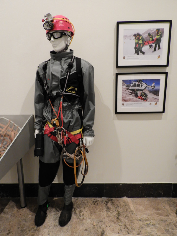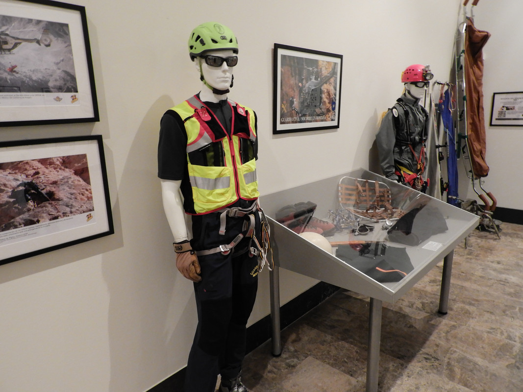 Justo al lado de los mosaicos romanos las espadas históricas de los altos mandos del cuerpo comparten salas con un detector de radioctividad o el uniforme completo que usan en la actualidad los equipos de rescate en la montaña.