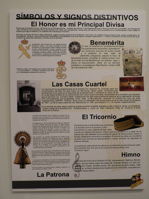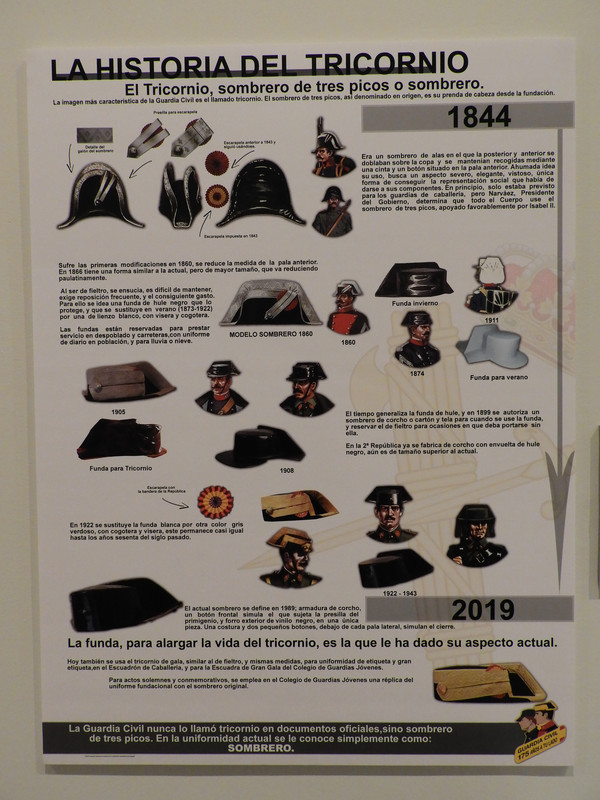 Entre los objetos se puede ver la pistola que ha sido reglamentaria durante más tiempo (una Star) o con una gráfica con la evolución del tricornio, entre otra multitud de curiosidades.