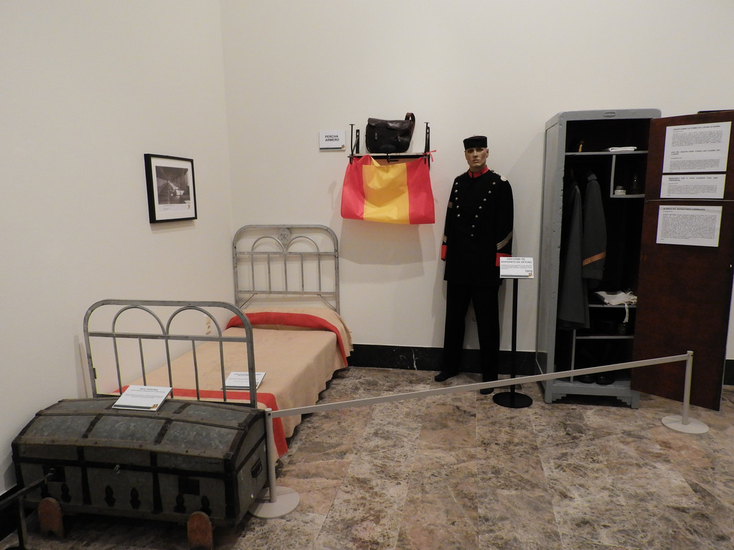 En un rincón de la sala se recrea el pequeño espacio que un recluta en los años 50 disponía para realizar la formación, así como el despacho de un coronel. La vida en las casas cuarteles estaba regulada por estrictas ordenanzas, como esa que impedía cocinar a las mujeres de los comandantes. Podían poner en riesgo la convivencia, alegaban.