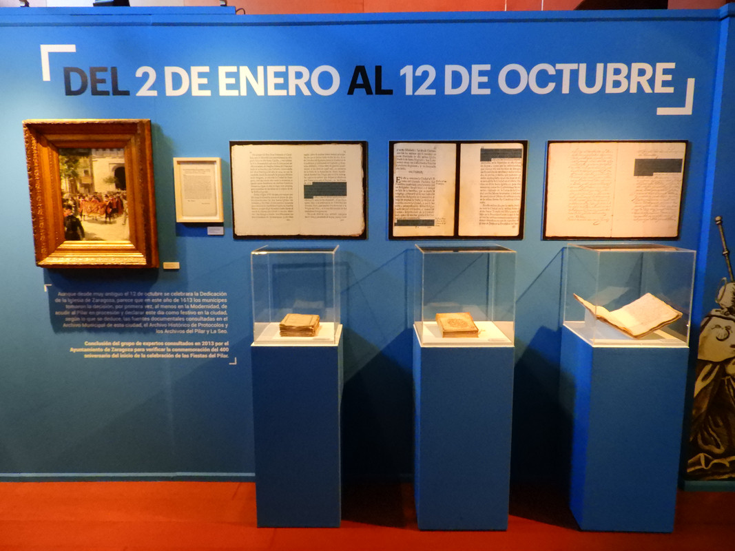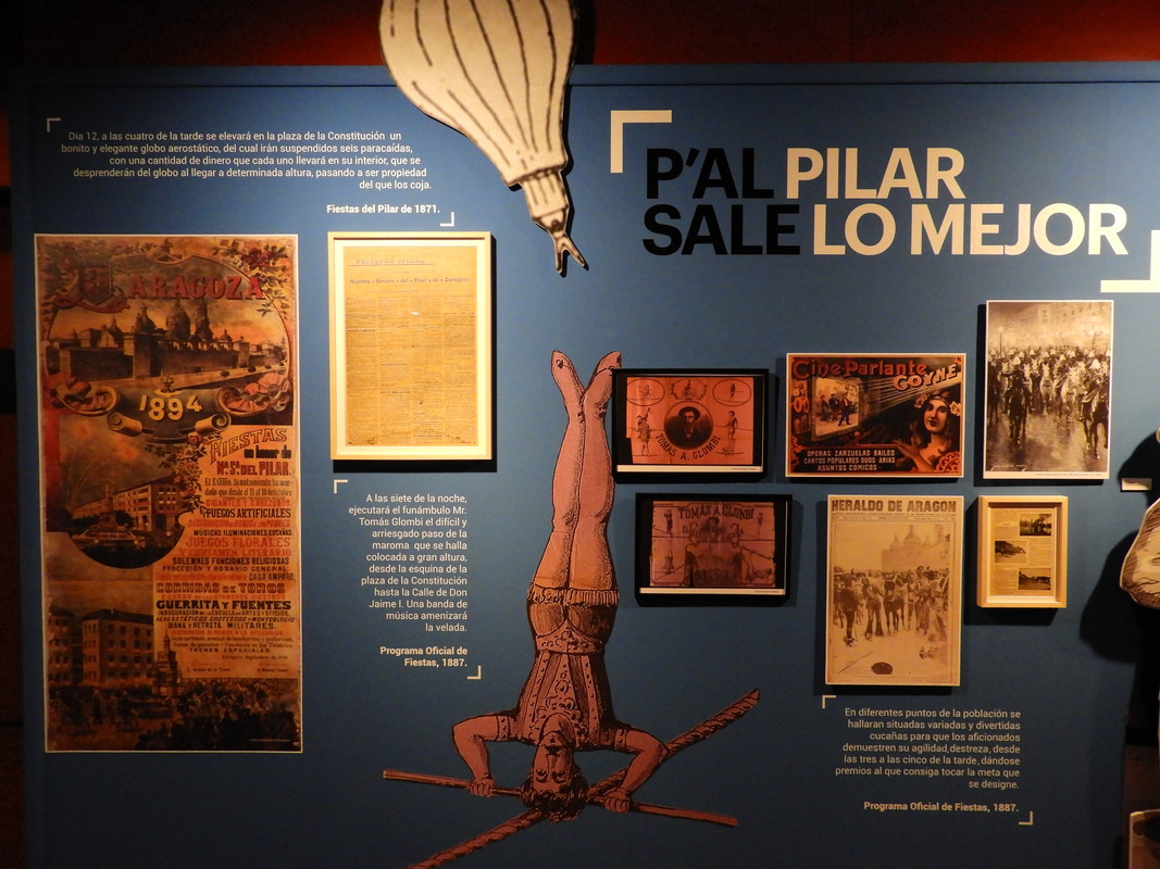 La muestra, que se divide en cuatro apartados, está compuesta por distinto material recogido de las fiestas del Pilar, como son reproducciones fotográficas, objetos de arte, maquetas, carteles, vídeos, ilustraciones y material de diversos archivos públicos y privados.