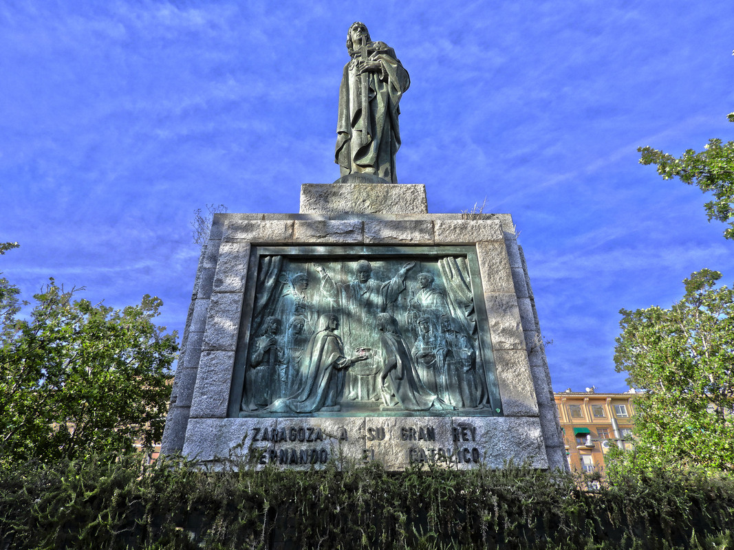 Este monumento situado en el centro de la plaza es el principal atractivo de la misma.Se trata de una estatua en bronce de 5,5 metros de altura que representa Fernando el Católico. Se apoya sobre un pedestal alto de 8 metros en total en el que se encuentra un relieve de bronce que representa la boda de los reyes católicos.