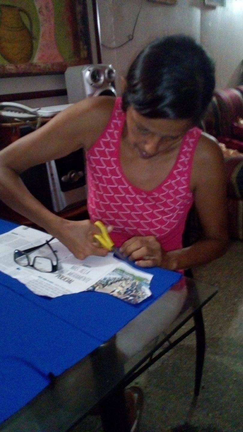 PRIMER PASO para su elaboración amigos colocamos la tela vertical,utilizando el patrón que fue sacado para la clienta empezamos a recortar la blusa con el patrón sobre la tela recordando siempre que hay que dejar un margen para la costura aproximadamente de un dedo o dos.