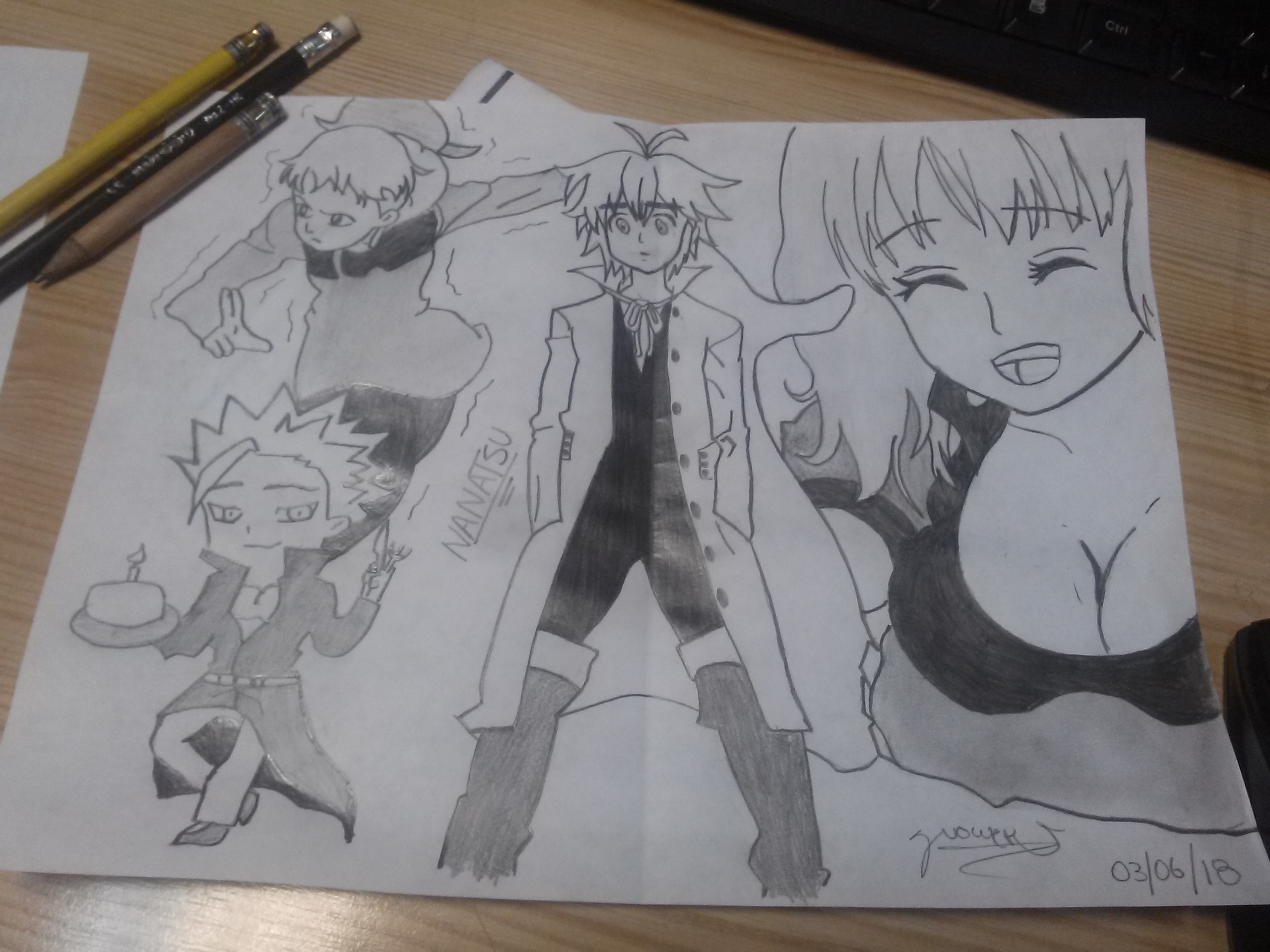 En estos momentos me encuentro mirando la 2da temporada de la serie Nanatsu No Taizai( 7 Pecados capitales) y pues la fiebre es tanta que me decidí a realizar un dibujo de mis personajes favoritos, Espero disfruten de estos garabatos