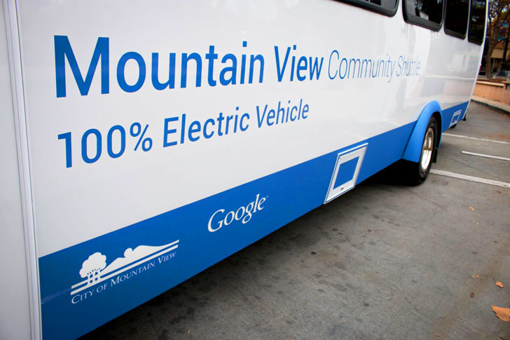 Mountain View, California, EE.UU, el lugar donde se encuentra la sede principal de Google. Los trabajadores que trabajan en esa sede pero viven en San Francisco, California tienen sus propios buses de transporte gratuito que los llevan de ida y de regreso hasta su ciudad, de manera gratuita y hasta con señal Wi-Fi.