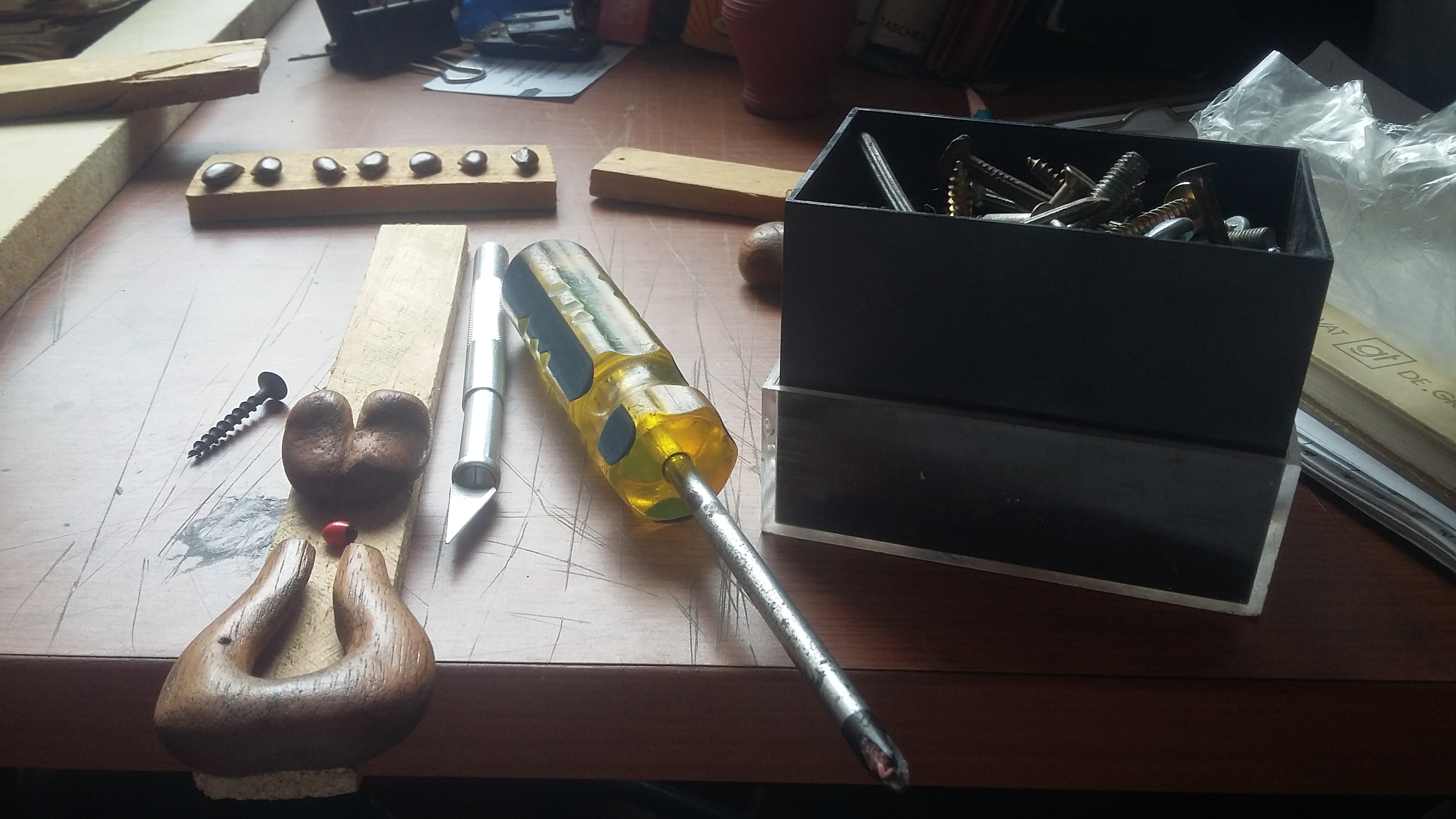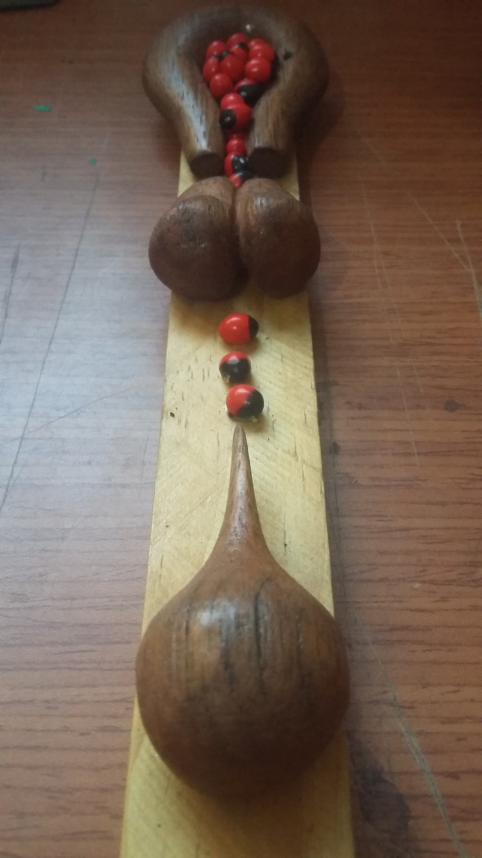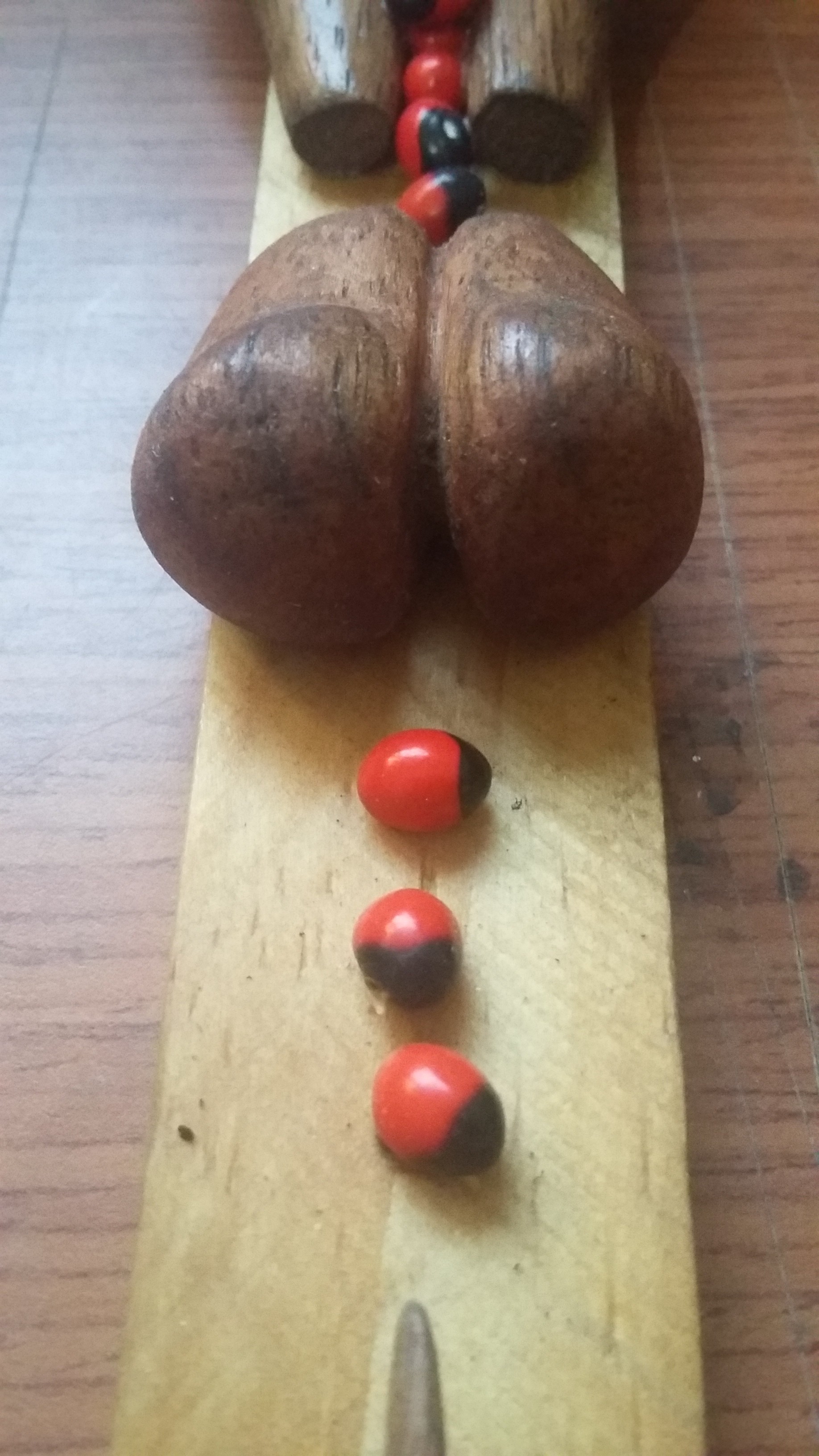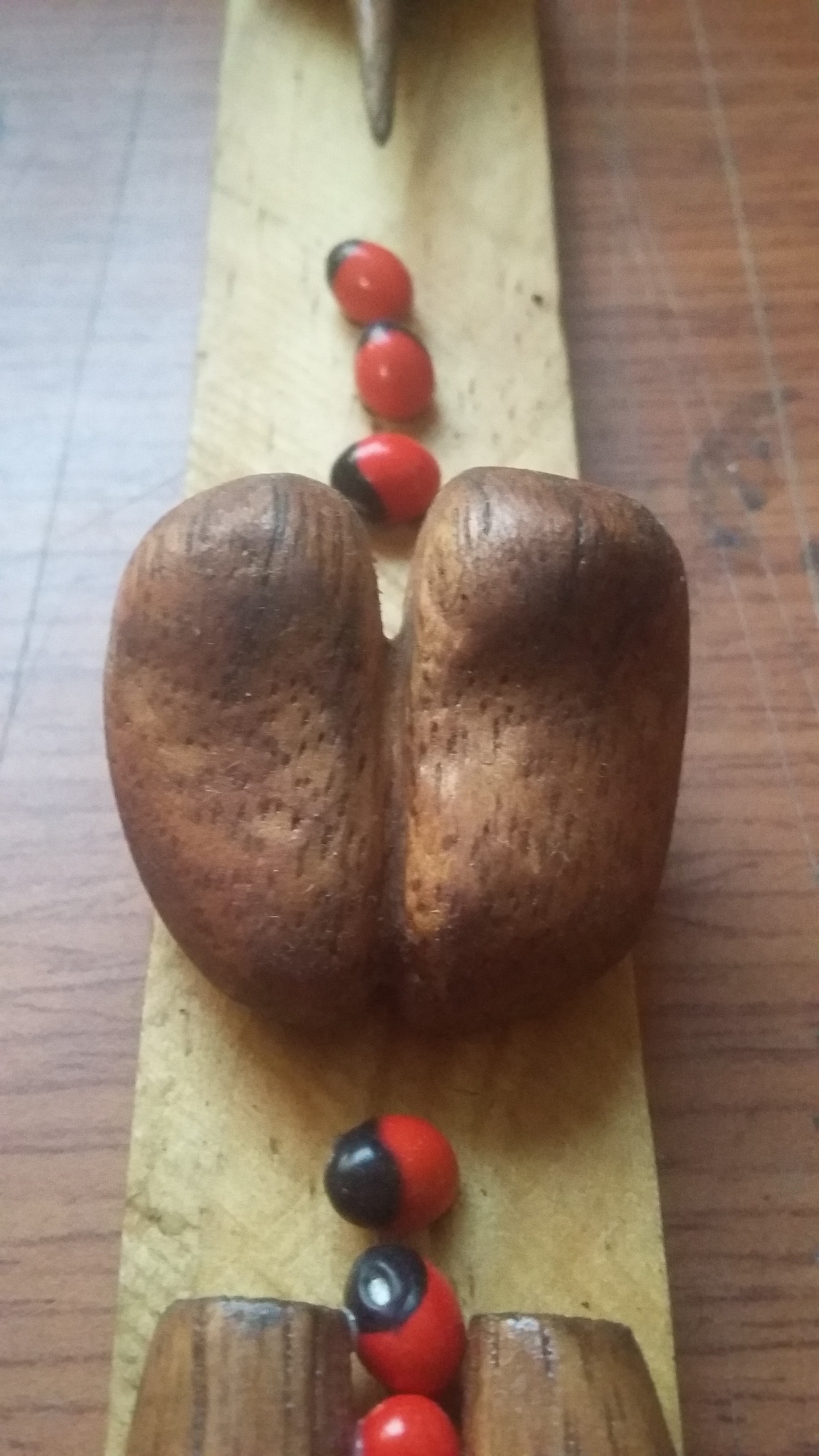 Después de un par de ideas, de disponer las piezas con un orden y un sentido establecido, paso a trabajar en su ensamblaje. Nótese que esta vez he incorporado un nuevo elemento dentro de mis piezas los cuales son las semillas de peonias comunmente utilizadas como amuletos contra el mal de ojo en los nilos recien nacidos y del fruto del níspero (uno de mis favoritos). Luego de estar cien por ciento seguro de la disposición de los elementos paso a su ensamblaje el cual debido a la precariedad y calidad de los materiales con los que trabajo siempre es un desafío lograr la finalización y factura apropiada de la obra final.