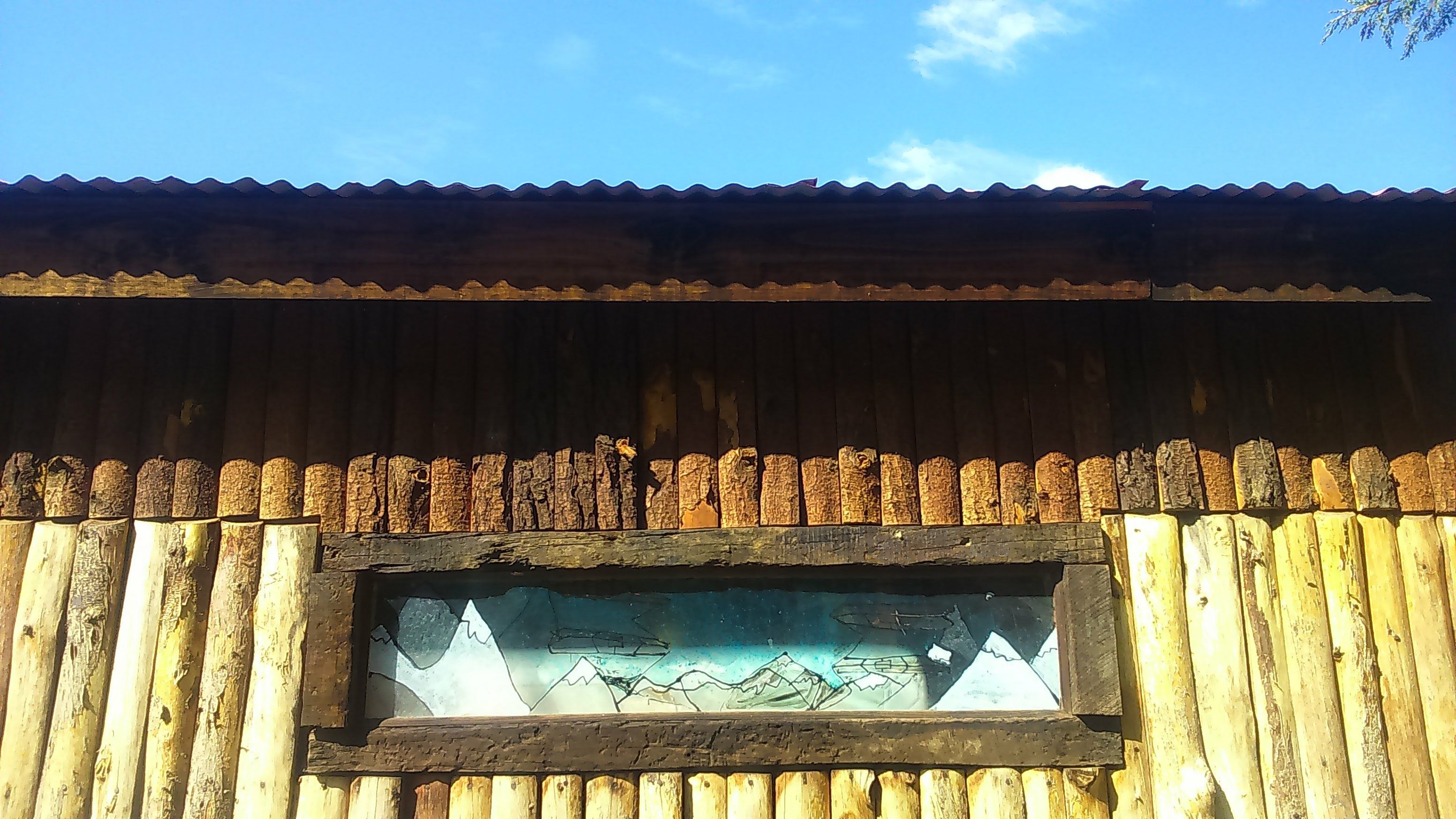 Montañas dentro y fuera de la ventana... Hermoso vitral.