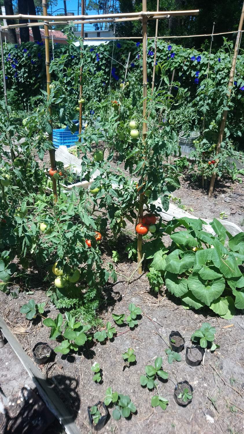 Como en la foto pueden ver luego de un tiempo de trabajo y aprendizaje sobre la marcha, he aquí la huerta en el jardín de una casa en el balneario Parque del plata a pocos kilómetros de Montevideo en Uruguay.