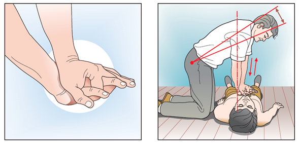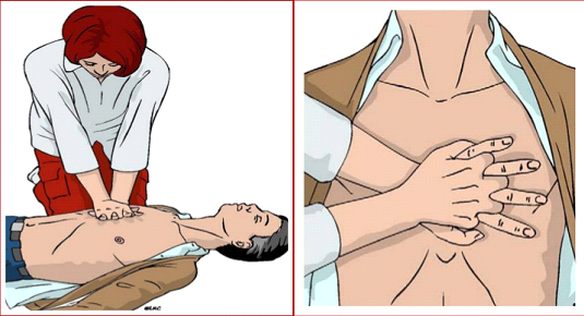 - Se ponen ambas manos en medio de las tetillas en el esternón del pecho (Imagen 2).