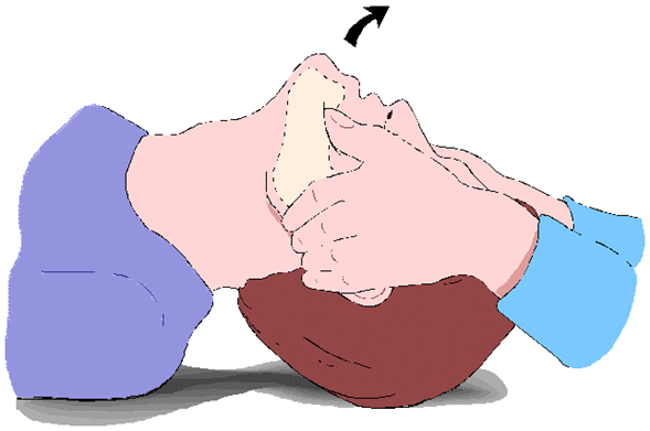 - Despejen la vía área de la persona levantando su mentón a un ángulo de 90° aproximadamente (Imagen 1).