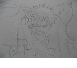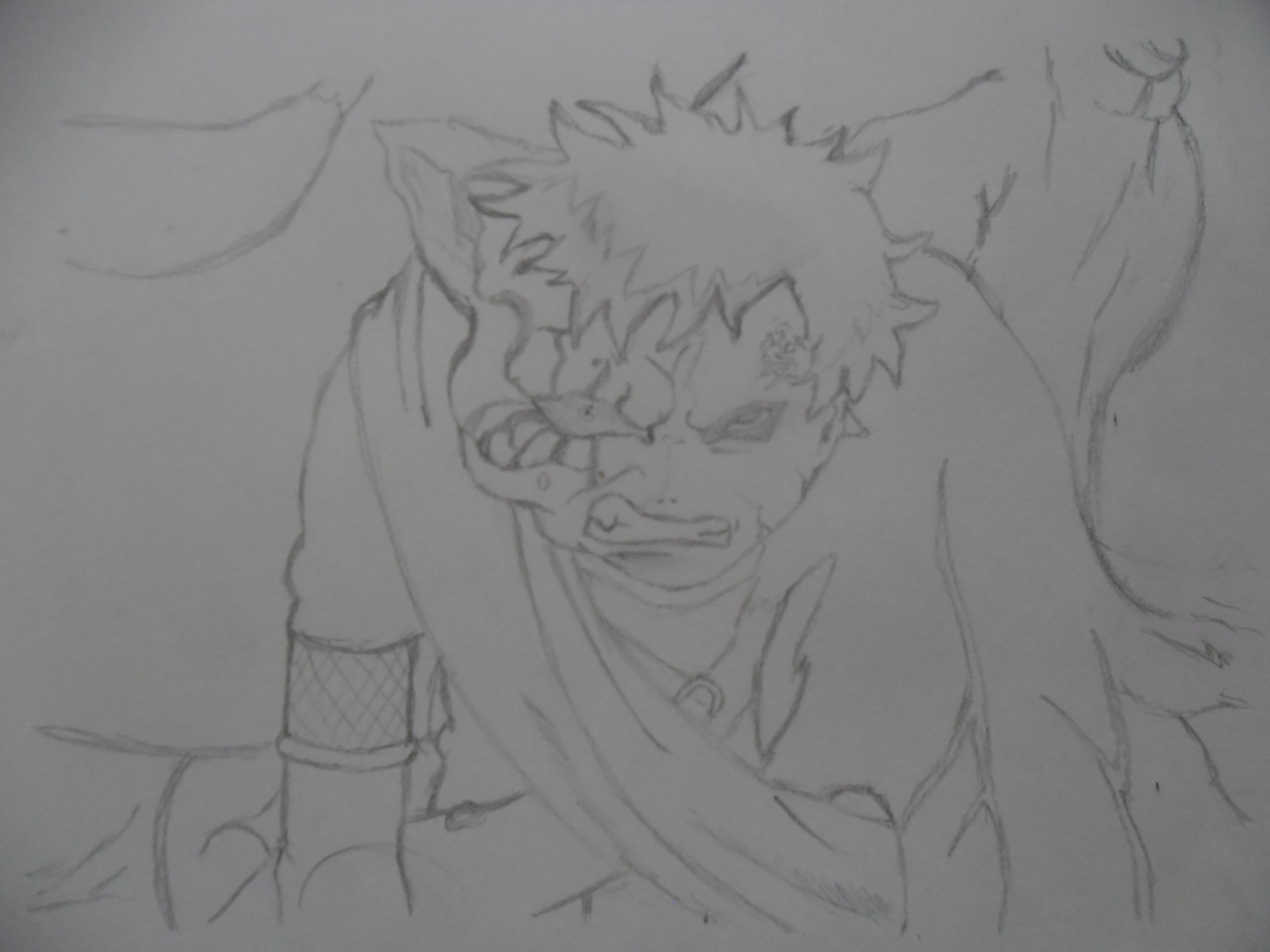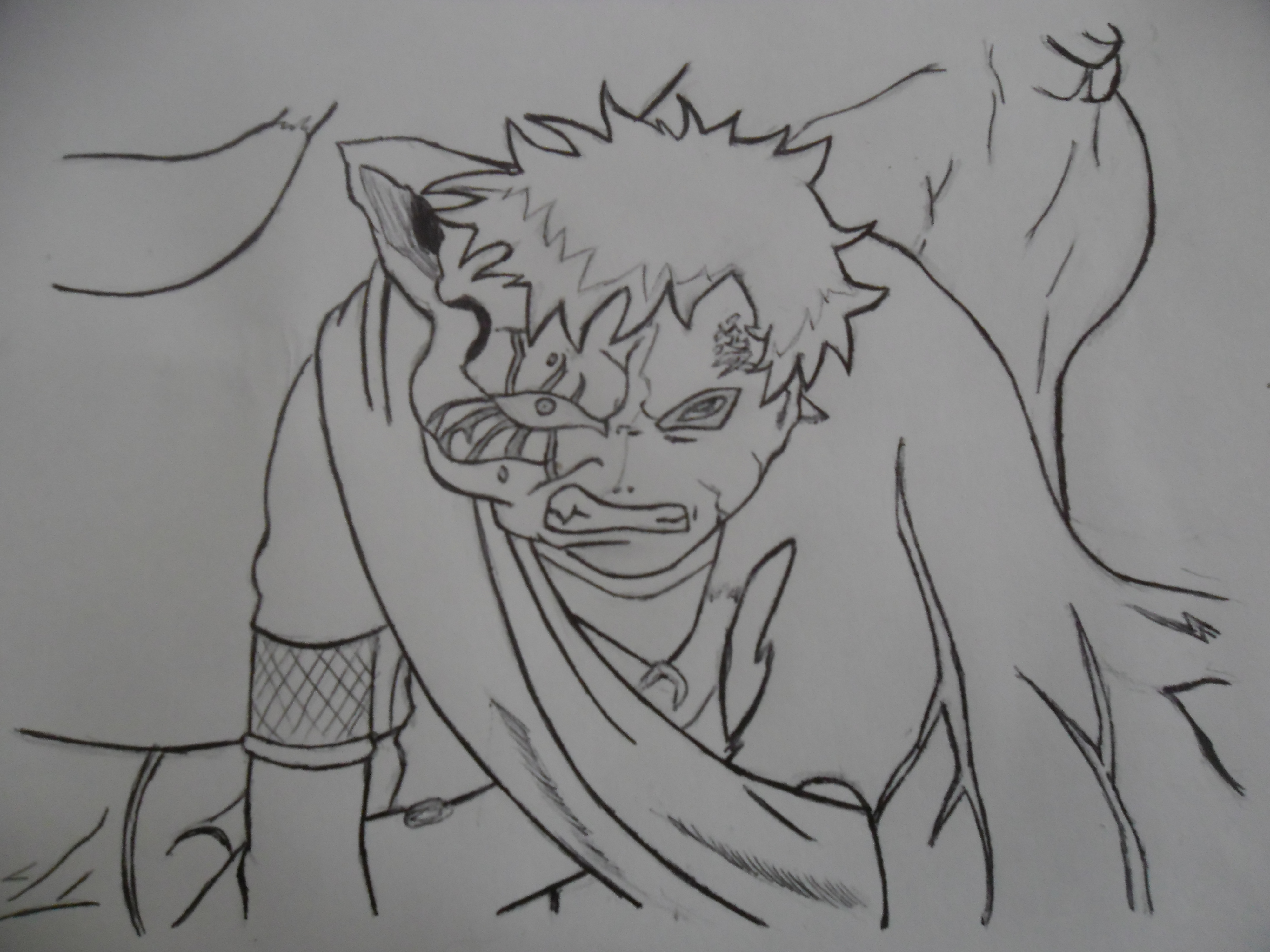 Este personaje contiene un jinchuriki (monstruos de cola) el cual es el shukaku (jinchuriki de una cola) bueno este dibujo es de una escena del capitulo 76 en el cual hay una pelea entre garaa y el equipo 7 (naruto, sasuke y sakura) que dura entre el capitulo 74 al 80, esta pelea es una de mis favoritas y buena aqui hice este dibujo para recordarla