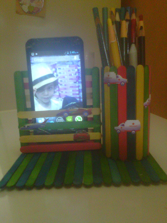 Al ser amante a las manualidades y también al arte de dibujar, me tenía un poco perturbada la ubicación de mis lápices y mi celular que es el principal aleado para poder capturar e inmortalizar cada trabajo que realizo. Por esta razón me vinieron muchas ideas a la cabeza, pero les confieso no tenía material suficiente para ponerme muy creativa que digamos, buscando entre los materiales que poseo me di cuenta que contaba con unas paletas de helados de colores, tenía silicón en barra y bueno, me di cuenta que poseía lo necesario para llevar a cabo lo que deseaba.