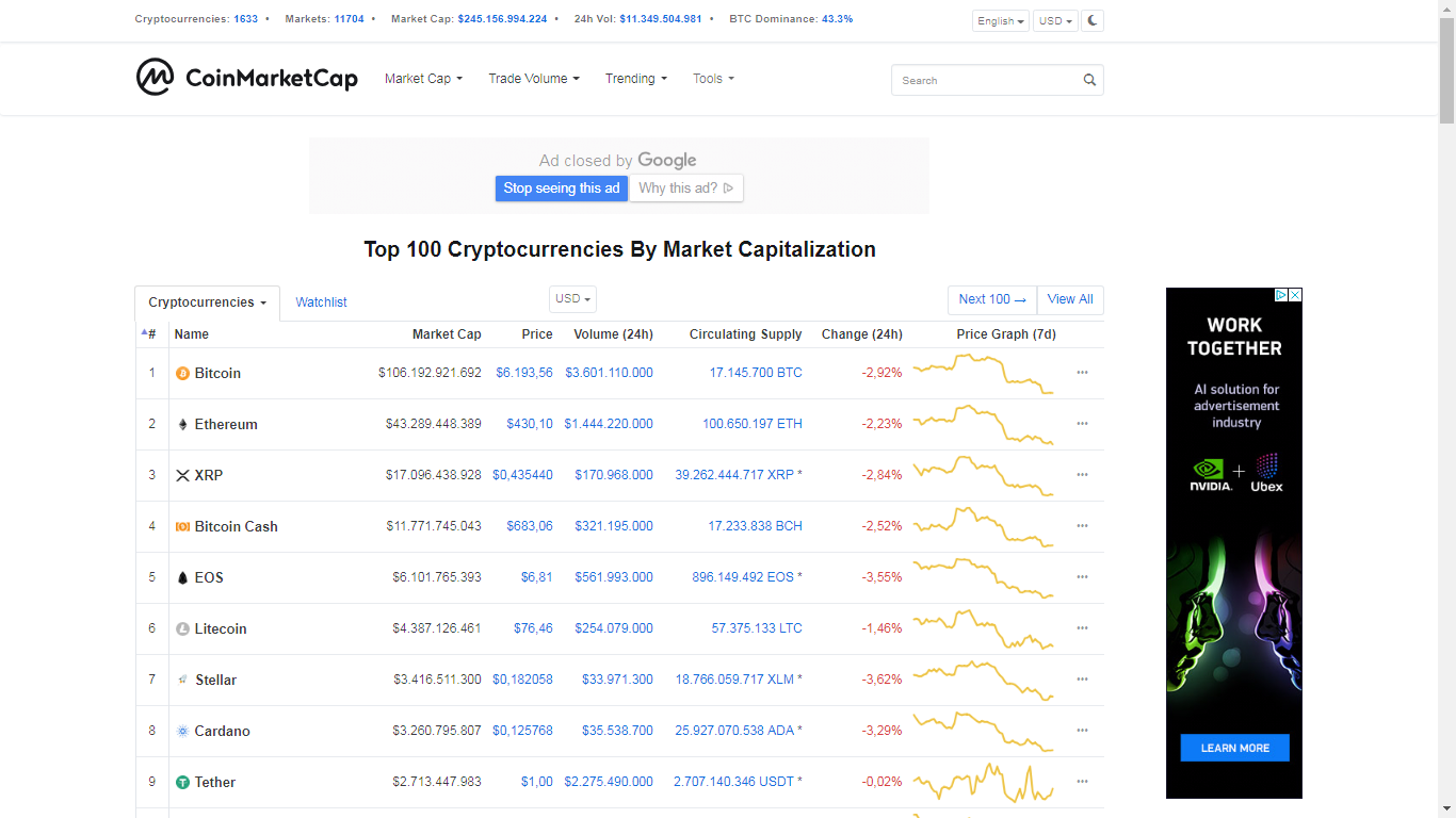 Que tal a todos muy buenas tardes, hoy venimos con un nuevo análisis de bitcoin, y observamos que el mercado a tenido una caída considerable arrastrando todas la altcoins. como podemos observa en coinmarketcap vemos un mercado negativo completamente rojo en un 100%. Ahora bien veremos en el análisis técnico del bitcoin que podríamos esperar para los próximos días.