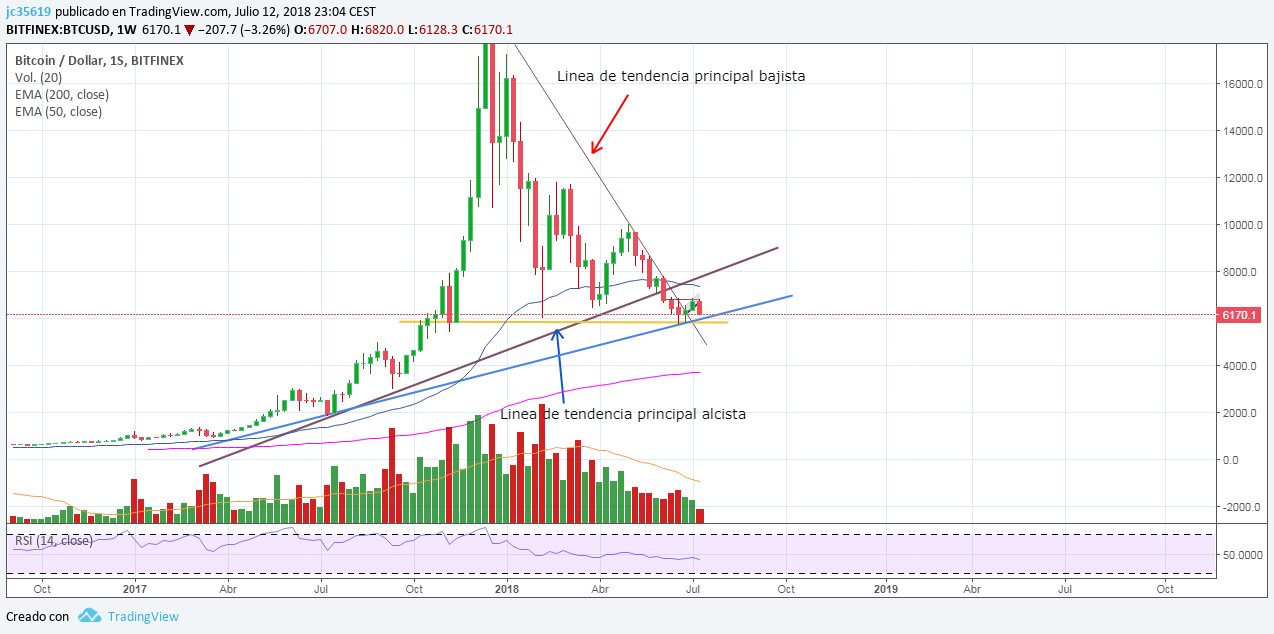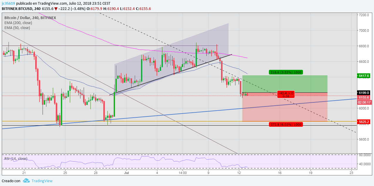 A mas corto plazo si bitcoin rompe la zona de los $6200 a la alza con fuerza y volumen nuestro targuet serian los $6400, si no es así y el precio sigue cayendo nuestro soporte estará en los $5800.