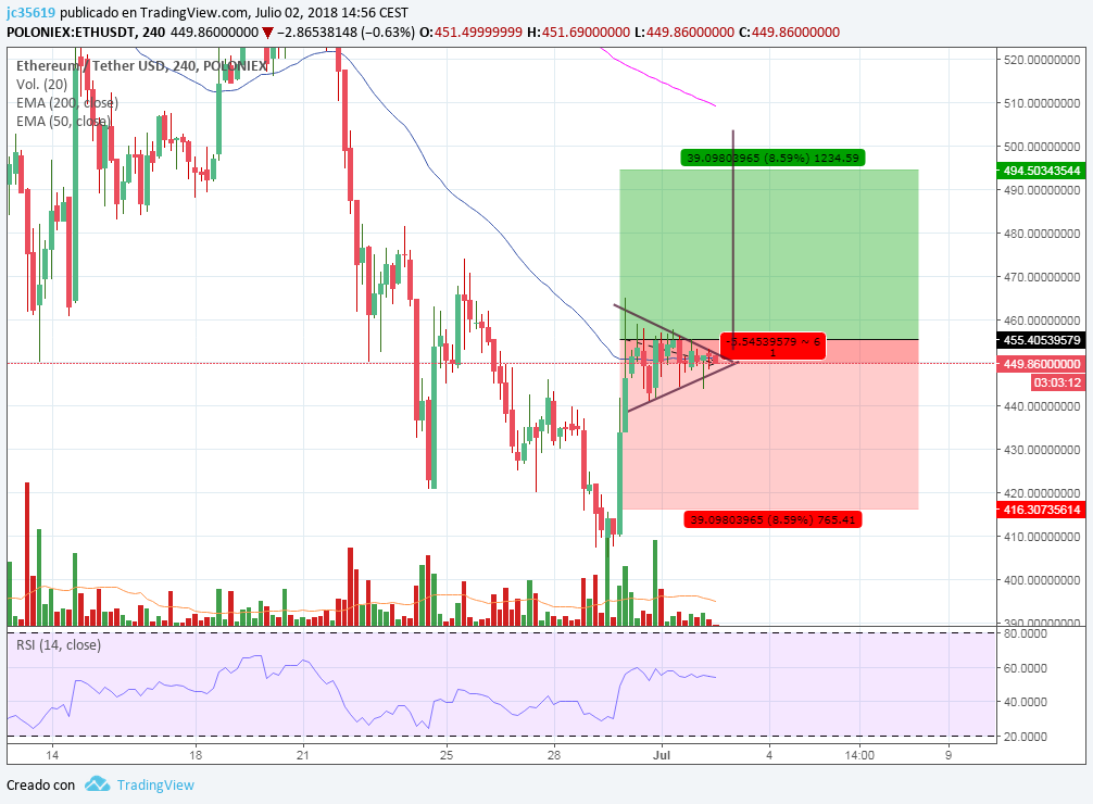 - Consolidación de precio área $450, $455.