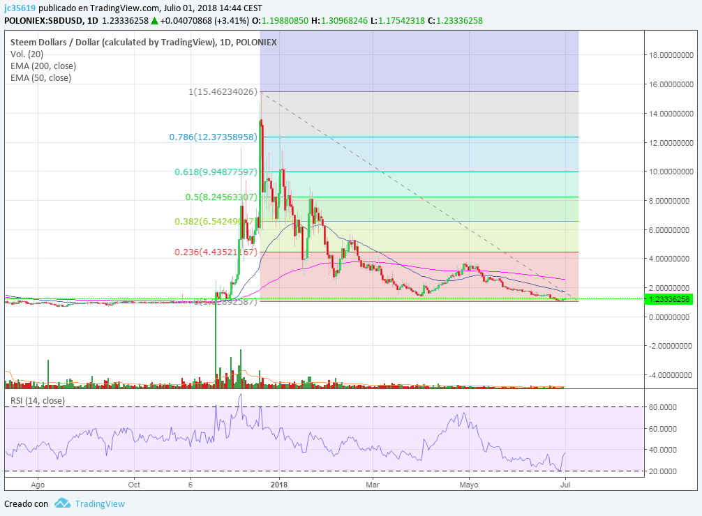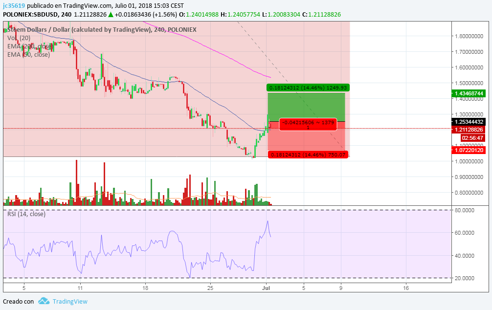 - Caso contrario si el precio cae buscaremos el soporte de los $1 que anterior mente ya lo tocamos.
