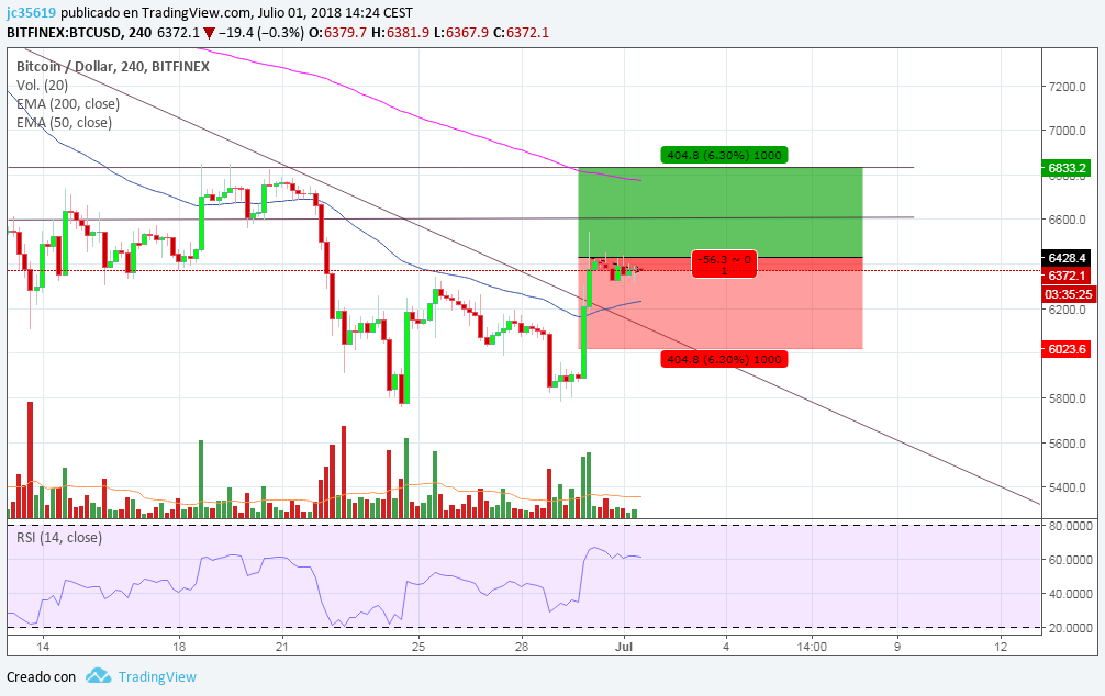 - Rompimiento de los $6400 al alza buscaremos los $6800, donde esta la próxima resistencia fuerte obteniendo un 6% de ganancia en el movimiento.