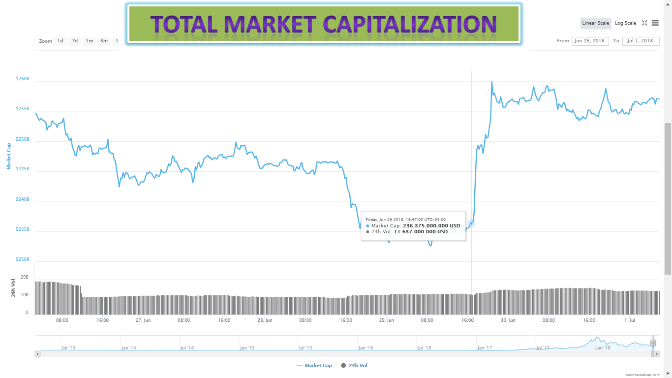En esta gráfica que nos refleja la capitalización del mercado, se puede apreciar que desde que se realizo la inversión ocurrida el día viernes debido al cierre de los futuros del bitcoin y la renovación de los mismo, el precio al día de hoy se a lateralizado fluctuando en una área especifica, realizando una consolidación en su precio. Ahora bien veremos que podemos esperar del bitcoin y algunas monedas para los próximos días.
