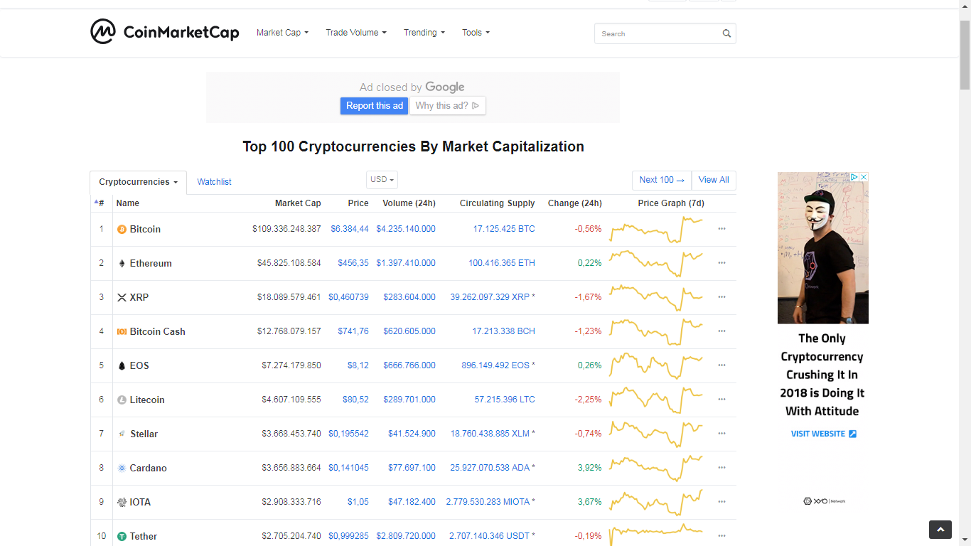 Como podemos apreciar en CoinMaketCap el mercado se encuentra mixto, ya que observamos algunas monedas ganando y otras perdiendo, es algo normal ya que el precio del bitcoin en este momento se encuentra lateralizado en un área de precio especifica y por tal razón algunas monedas ganan y otras pierden, pero si nos percatamos bien esas perdidas que reflejan las monedas en rojo son porcentajes muy bajos que en cualquier momento podría cambiar.