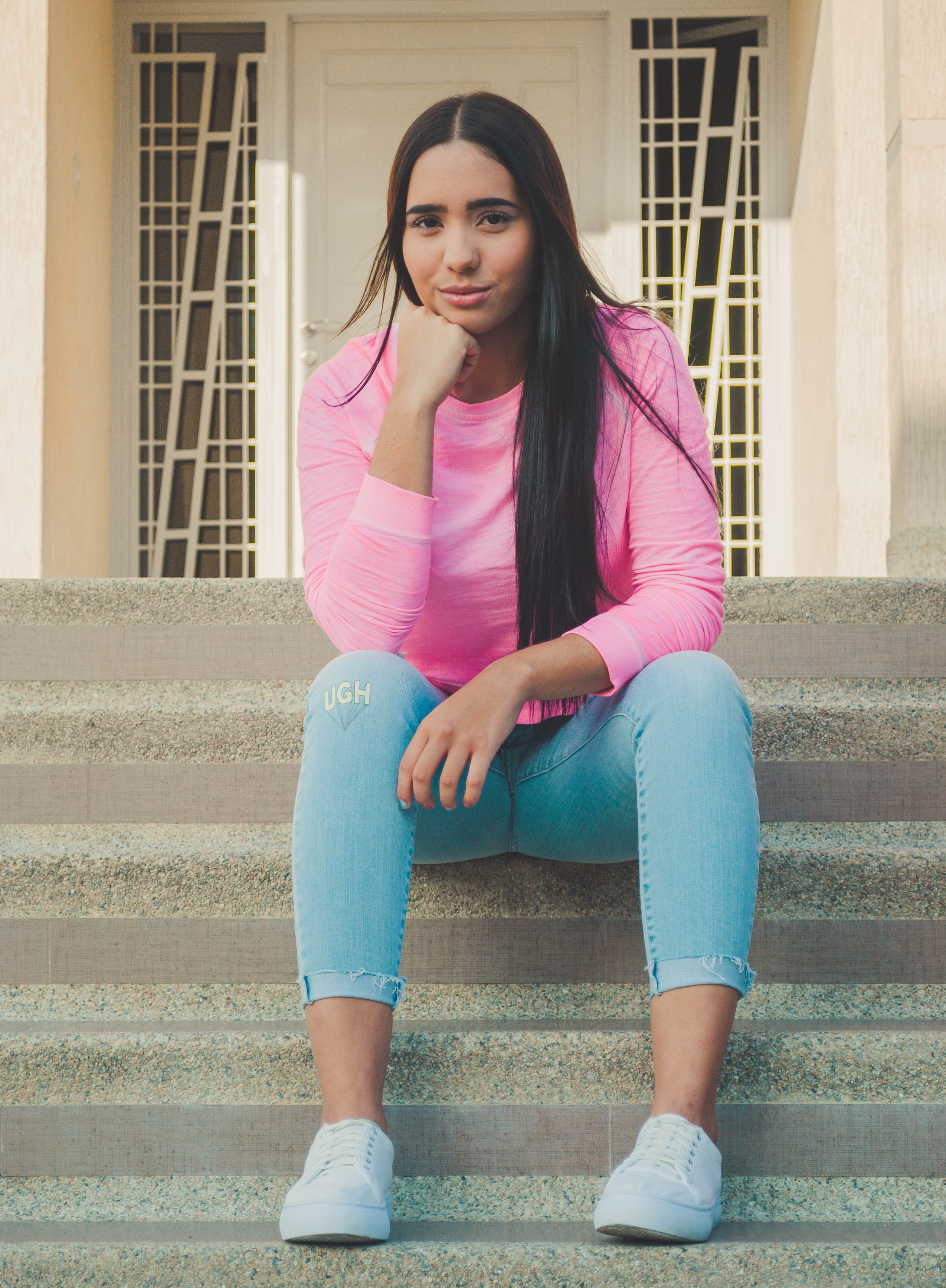 Su nombre es Ana Fernández, es una chica divertida, atrevida y motivadora. El día pautado para la sesión llegó, no puedo dudar que me encantan los momentos como ese. La tarde fue muy soleada y calurosa, pero Ana y yo estábamos entusiasmados así que aprovechamos aquella luz natural. Siento gran gusto por las fotografías en la calle, inspiran valentía además de expresar arte callejera, que a lo largo de los años se ha incrementado. Ella me pasó buscando y me comentó que le gustaría ir a una urbanización privada llamada “Falcon Crest”. Le dije que ya había tomado fotos ahí pero no estaba demás intentar buscando otros ángulos. Nos divertimos mucho porque Ana estaba muy nerviosa, no sabía cómo posar muy bien y yo con chistes le hacía un poco de “bullying”. La orienté y la guié para que posara de manera que las fotos quedaran acorde con el lugar. Cabe acotar que recientemente he estado haciendo muchas sesiones a modelos no profesionales, cómo es el caso de Ana. Le encantaron muchas de mis fotografías anteriores y me contactó, yo sabía quién era pero nunca habíamos tratado. Si, el arte nos hace conocer personas y socializar.