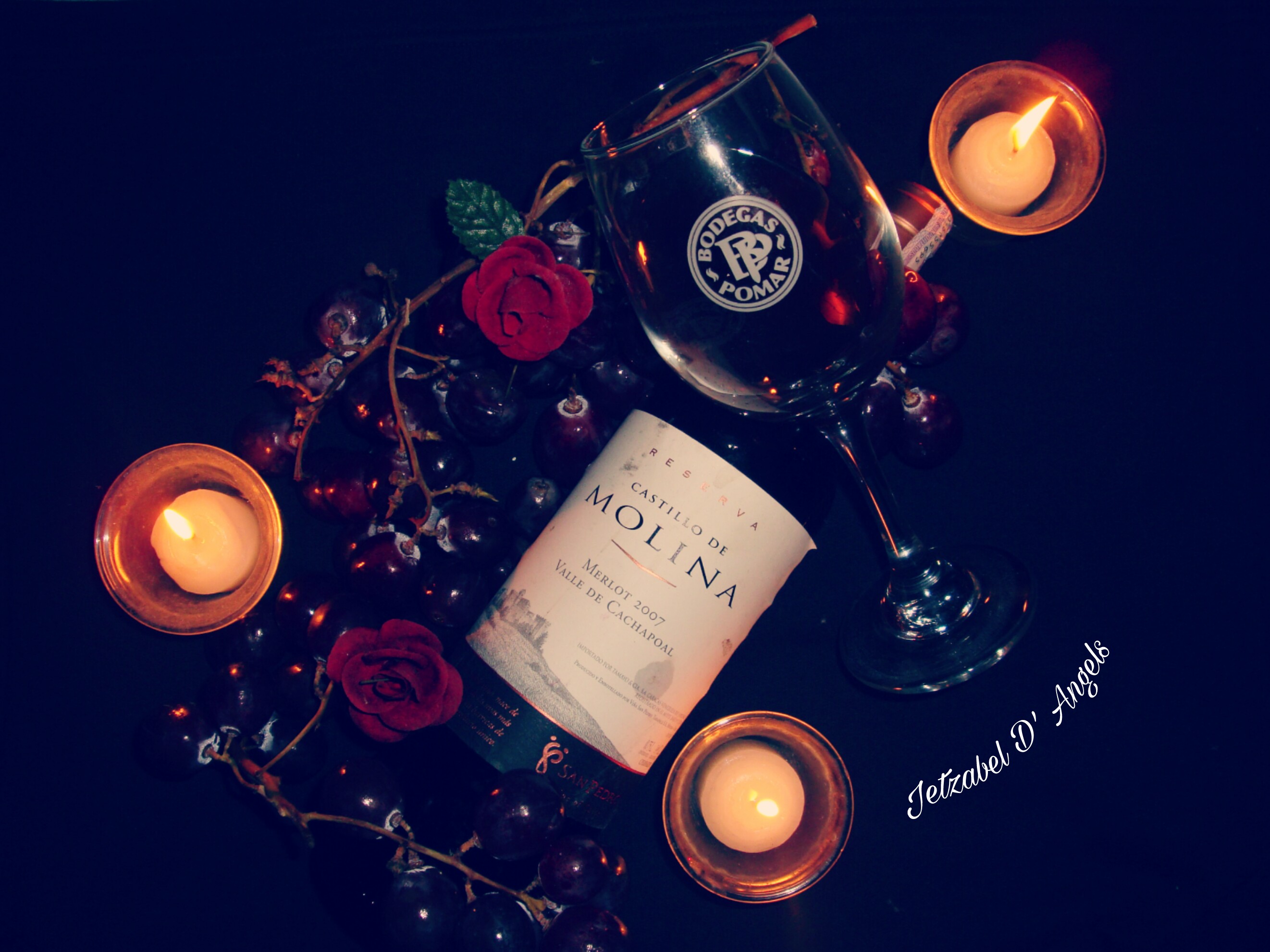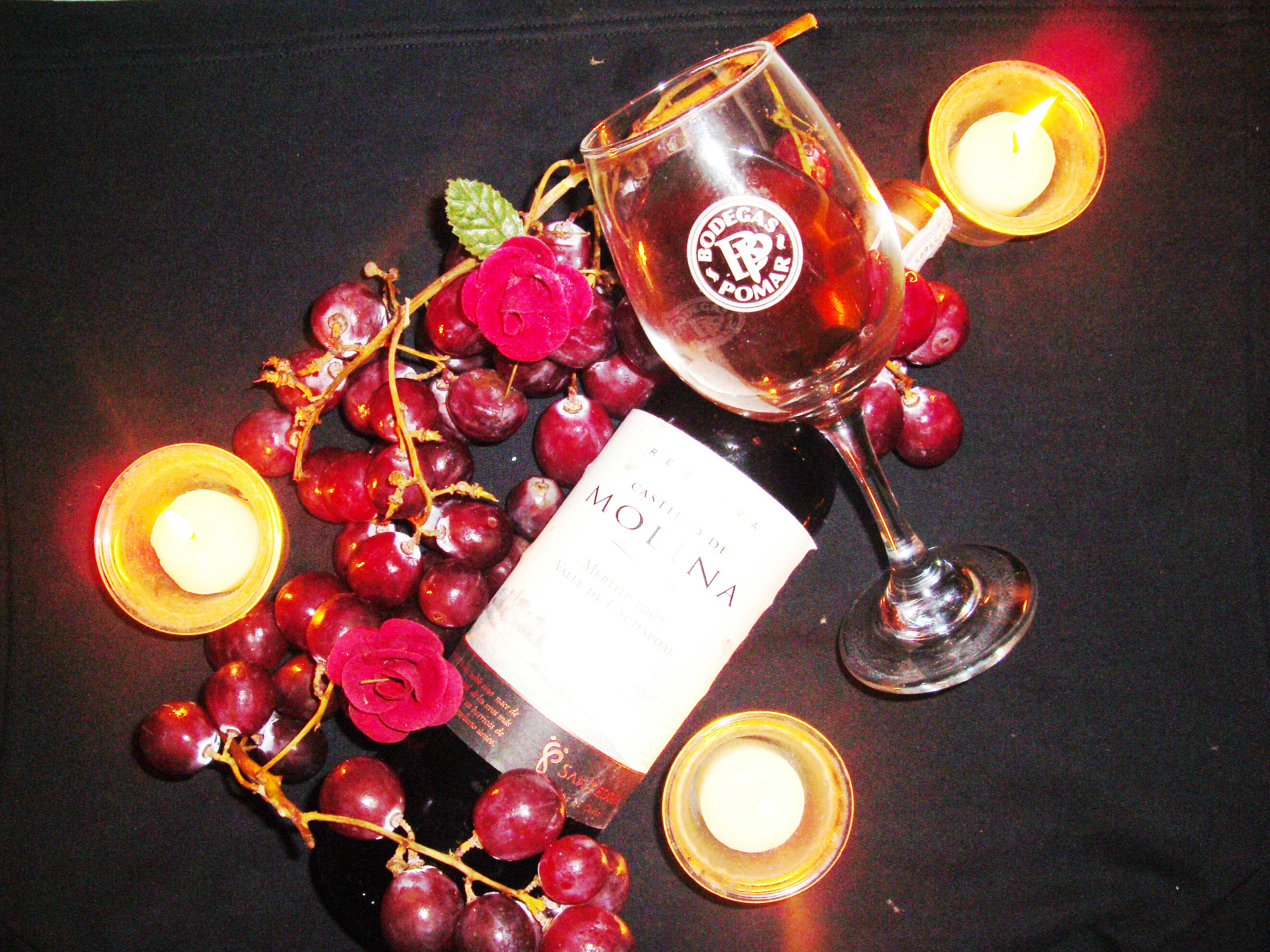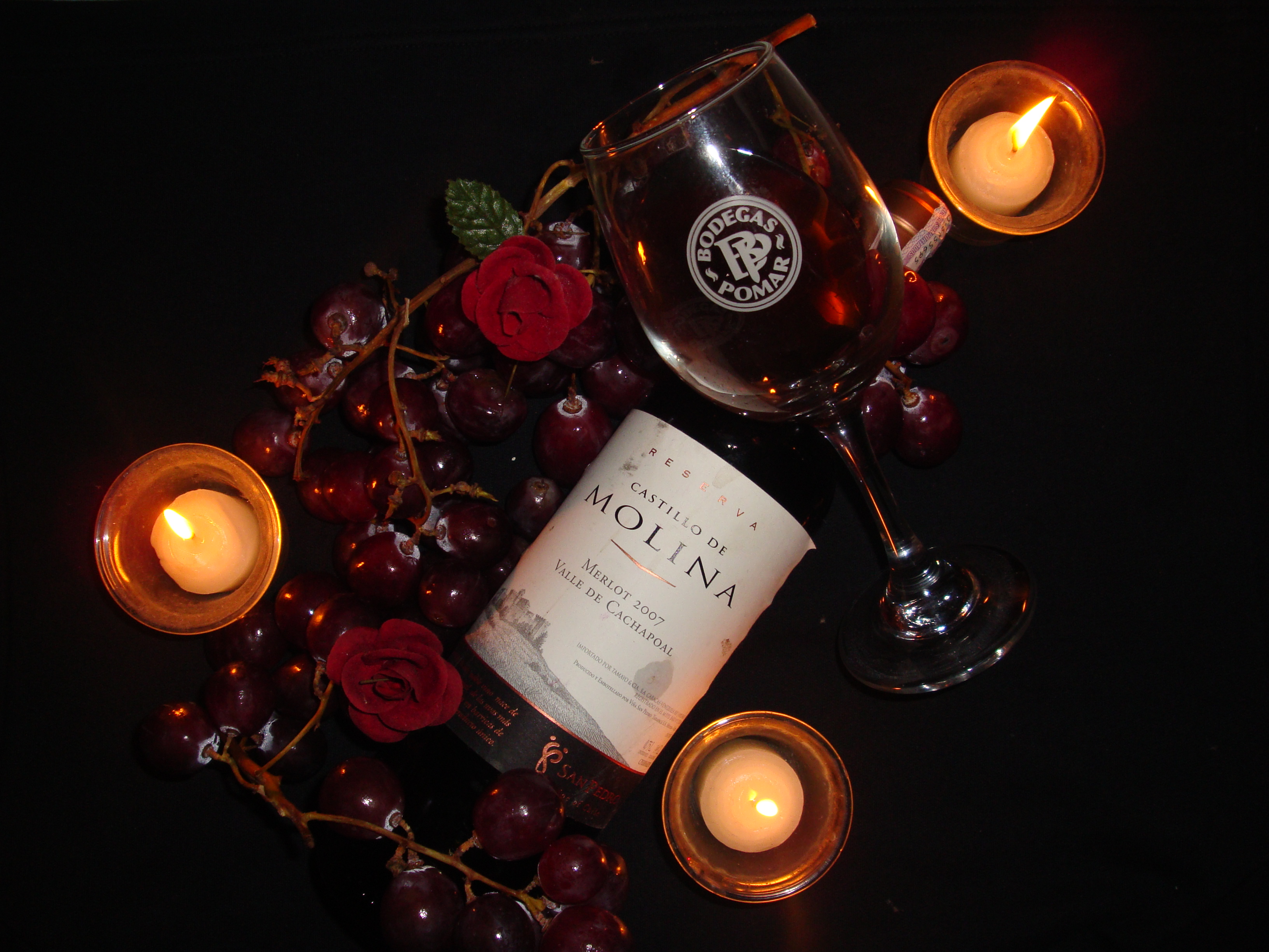 ¿A que me refiero? resaltar los colores, que el fondo-en este caso negro- se perciba como un vacío, al resaltar dichos colores se rescata el romanticismo, ya no nos imaginamos una bodega, sino una cena traquila bien sea con nosotros mismos contemplando una chimenea y degustando ese exquisito vino, o en compañía de esa persona especial.