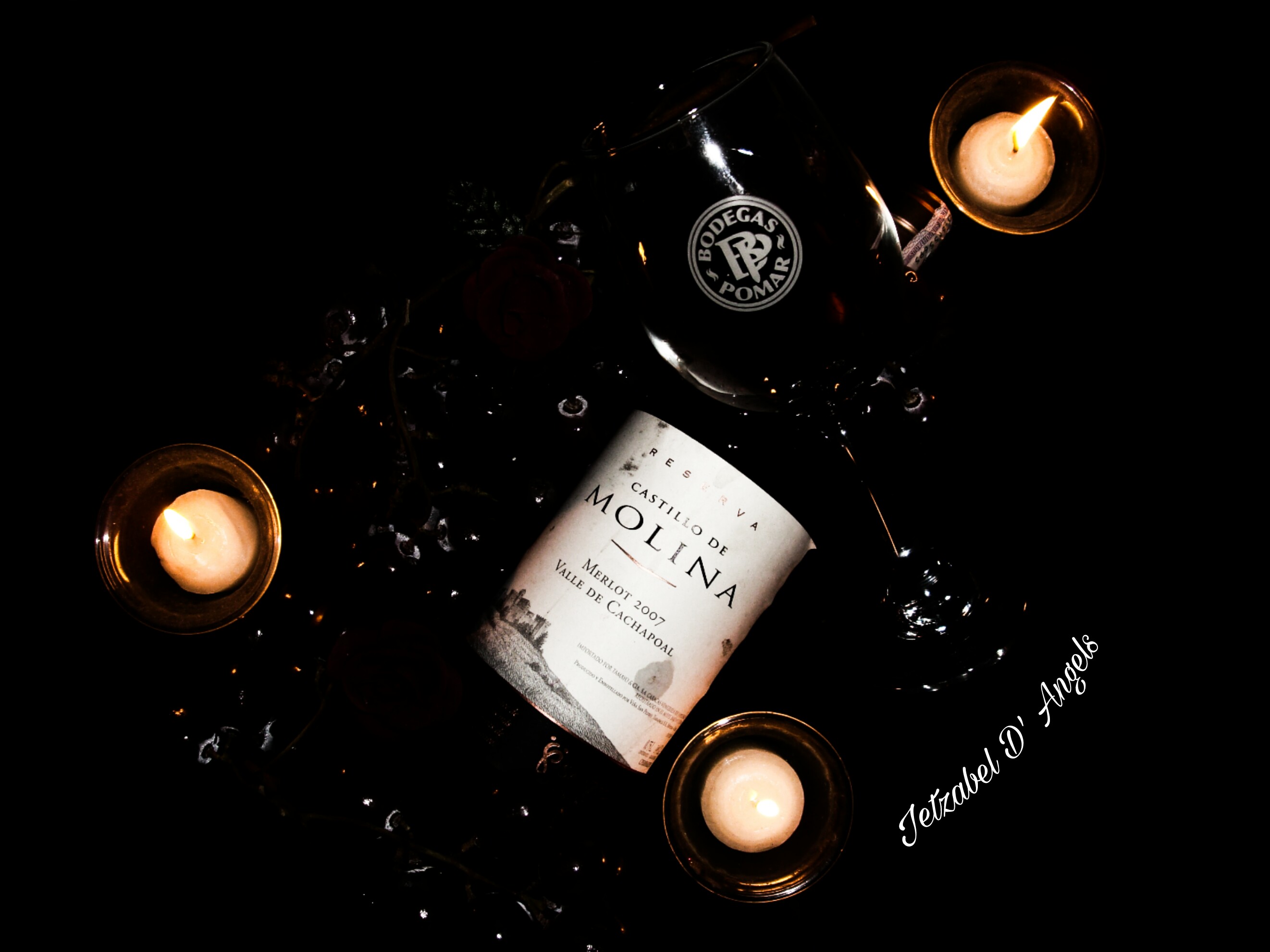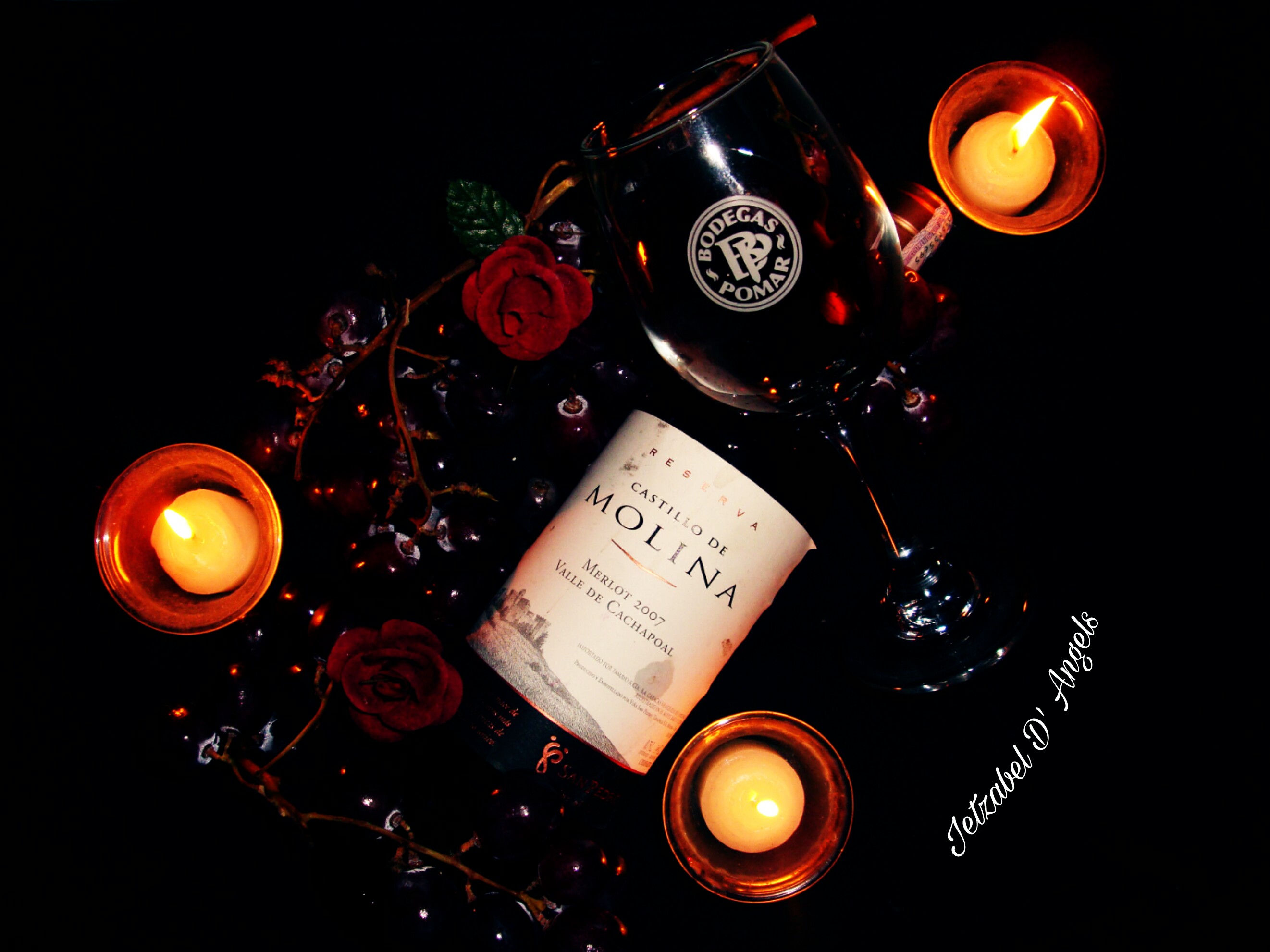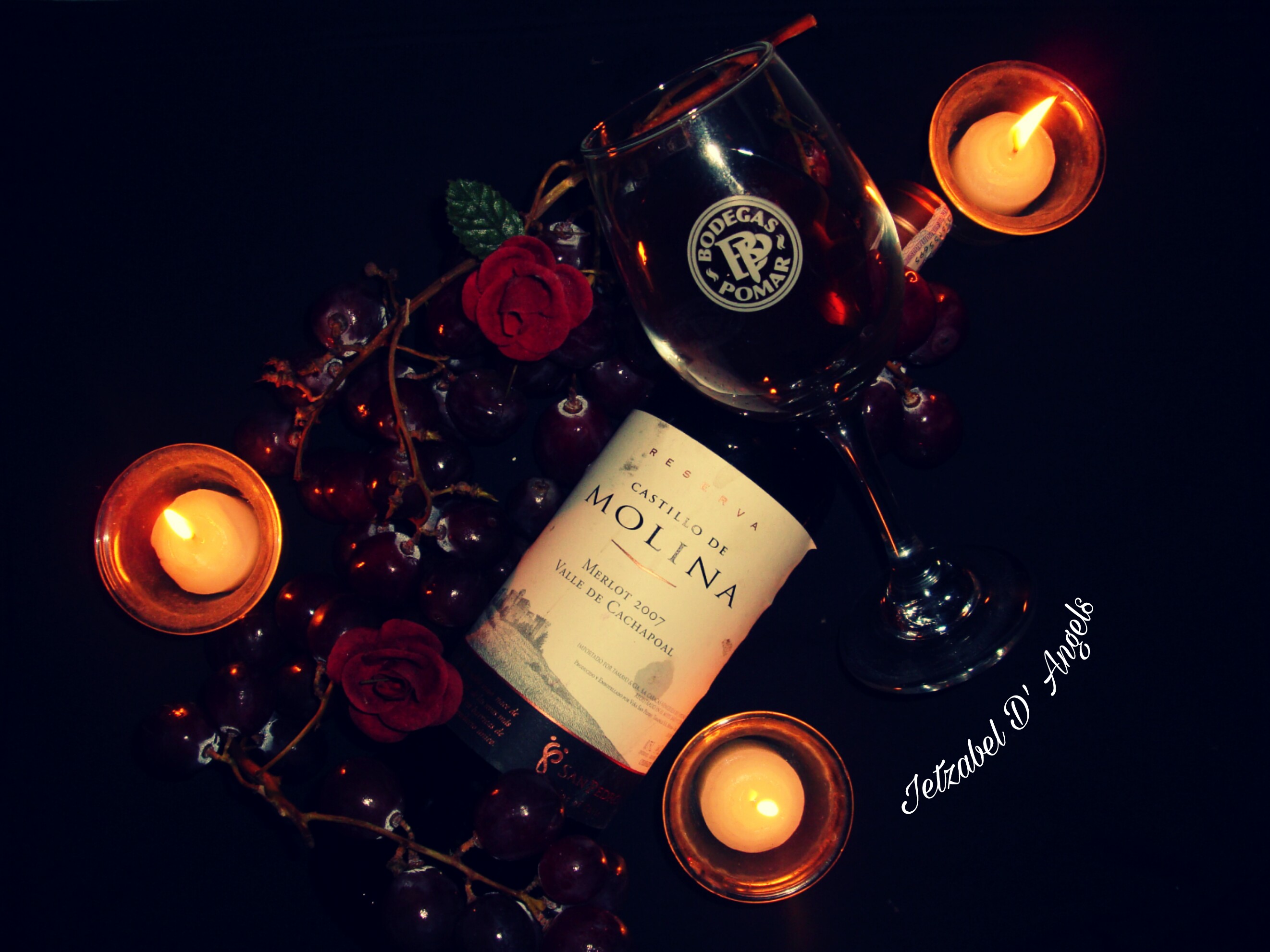 ¿A que me refiero? resaltar los colores, que el fondo-en este caso negro- se perciba como un vacío, al resaltar dichos colores se rescata el romanticismo, ya no nos imaginamos una bodega, sino una cena traquila bien sea con nosotros mismos contemplando una chimenea y degustando ese exquisito vino, o en compañía de esa persona especial.
